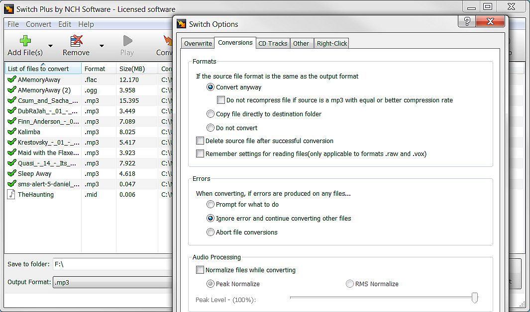 - Choose your Switch settings by adjusting your overwrite, conversion and CD track features.