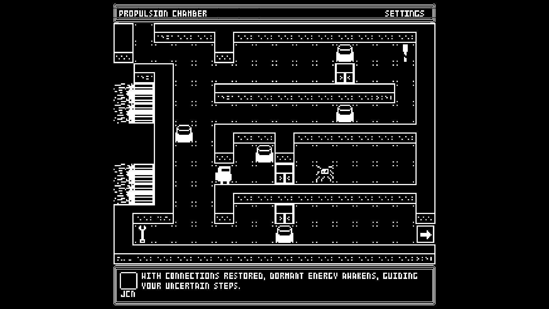 The blend of minimalist black-and-white pixel art, immersive ambient sounds, and fragmented storytelling creates a unique atmosphere where tension rises with every step. Uncover the truth behind the invasion that left the ship silent and decide your ultimate fate.