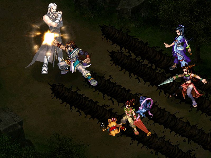 《仙剑奇侠传二》是由大宇资讯股份有限公司旗下的狂徒创作群、DOMO小组携手制作的单机游戏,于2003年1月上市。二代故事发生在一代的8年之后,剧情紧接一代,围绕王小虎、苏媚、沈欺霜、李忆如展开,讲述四人交织出一段错综复杂的故事。一代的主角以及全新人物在二代中出现,交待了前后两代发生过以及即将发生的感情恩怨纠葛。本作首次出现了御灵、虎煞、阵术、养蛊、喂毒等多种战斗和养成系统,战斗采用45度视角斜向以及全动态同步回合制的攻防方式。
