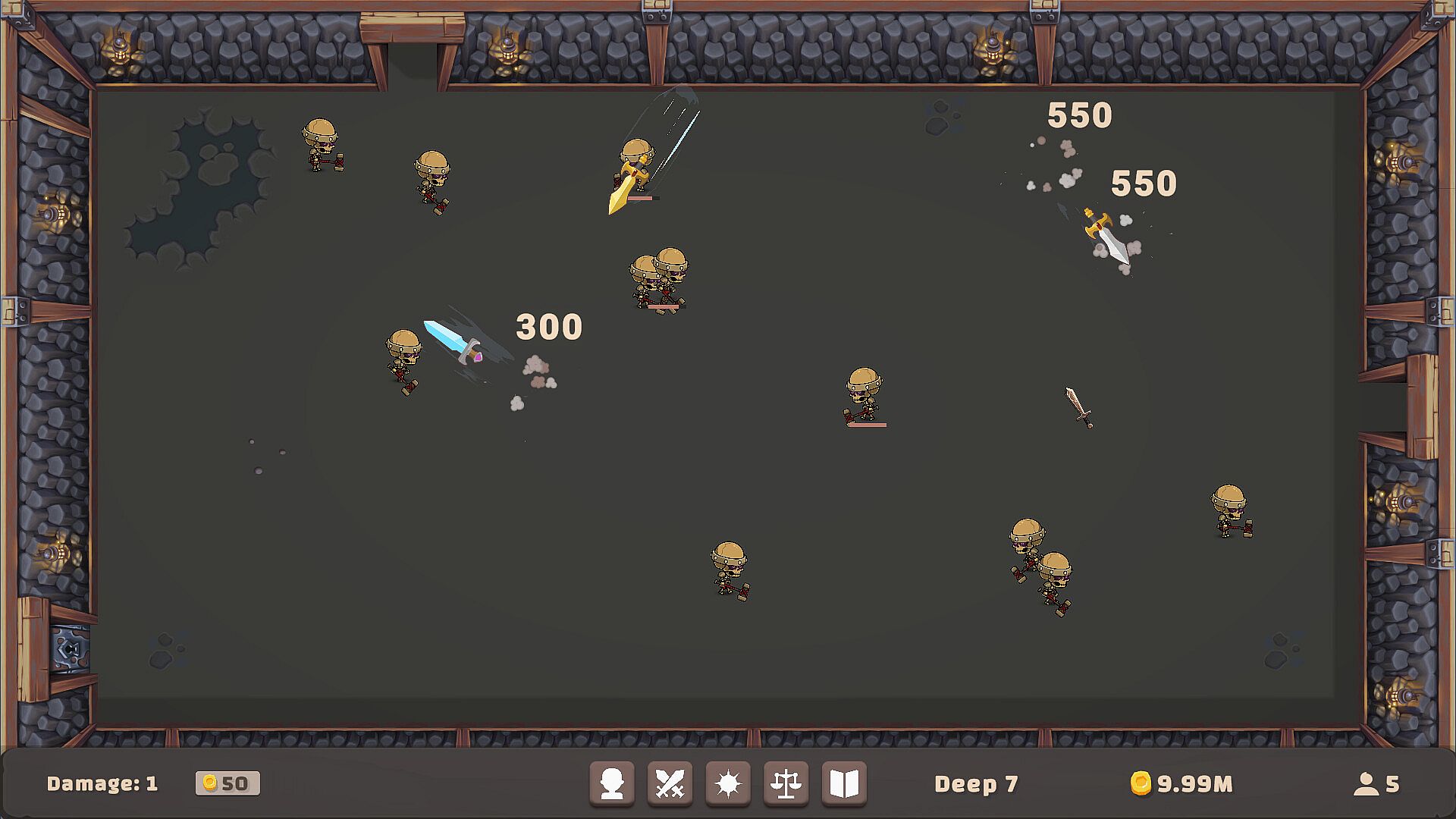 Embark on an idle incremental adventure set in a dungeon teeming with monsters. Progress through each deep where every boss room presents a unique opportunity to free prisoners. These allies, once liberated, can be trained in essential skills to bolster your journey: forge swords with Sword Masters to enhance your offense, create protective shields with Skill Masters, and acquire special, powerful items from Trade Masters, like buffs for critical hits and weapon upgrades.