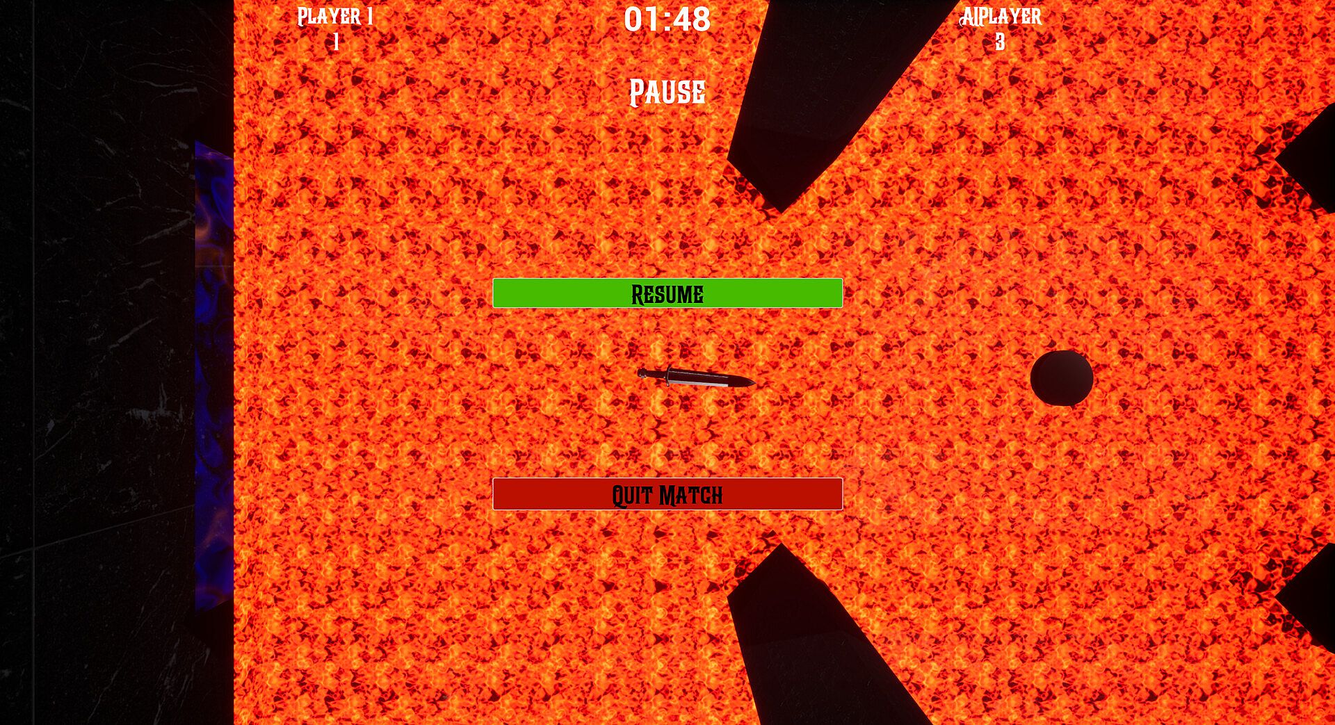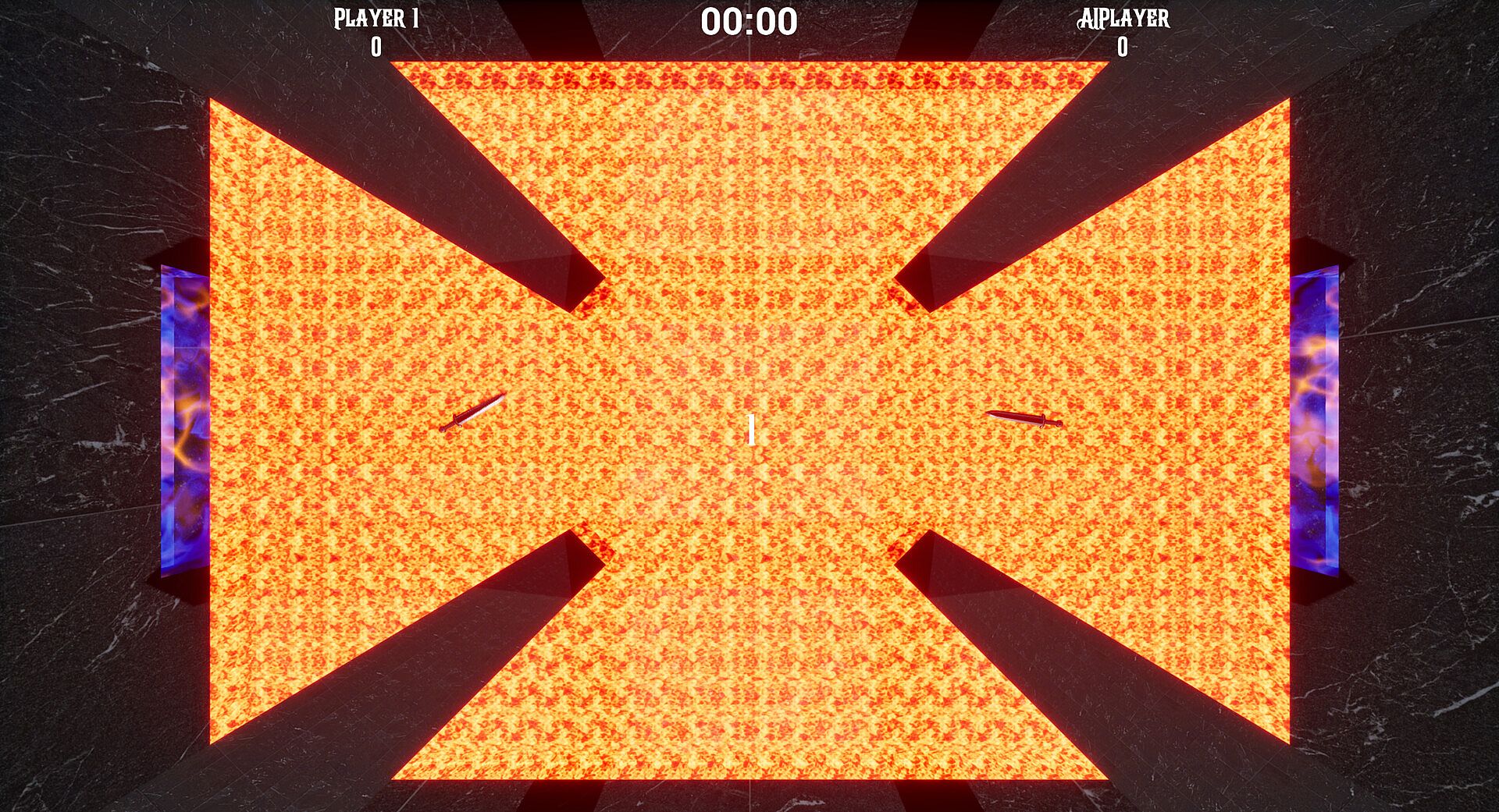 A simple passion project from a solo developer. Inspired by air hockey, this game is a 3D top-down game where you control a slippery floating sword guided solely by your mouse. Like air hockey, you and your opponent compete to strike a puck into your opponent's net while defending your own. However, unlike air hockey, this game allows you to glide across the entire arena (not just your side) and strike your opponent's weapon as well as the puck. The swords can be difficult to control, much less the puck, so make sure to guide them with precision using your mouse.