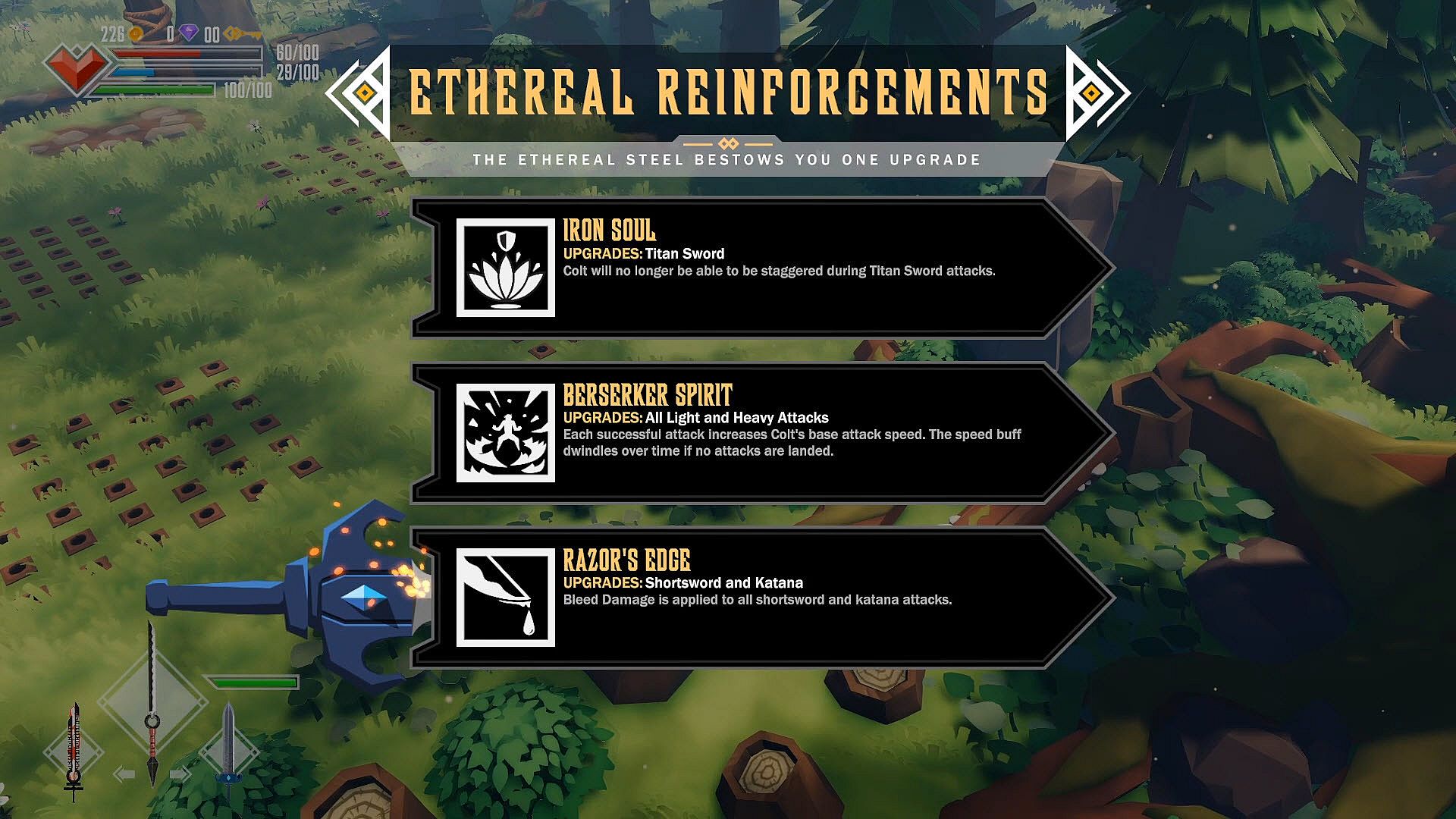 A giant blade has plunged into the Earth bringing a hail of smaller blades along with it. The calamitous sword, stabbed into the mountains, seems to be draining the power of the Earth itself and with each passing day the rain of swords grows heavier and heavier. To undo this vile corruption, you’ll play as Colt, an unwitting hero who has gained the ability to wield the fallen blades.