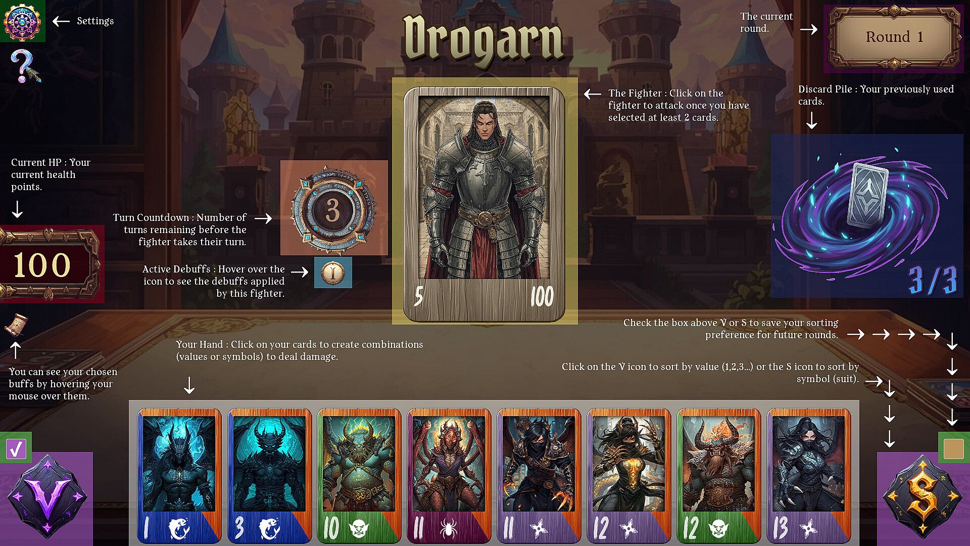 Use powerful combinations based on the values and symbols of your cards to deal devastating damage to your enemies.