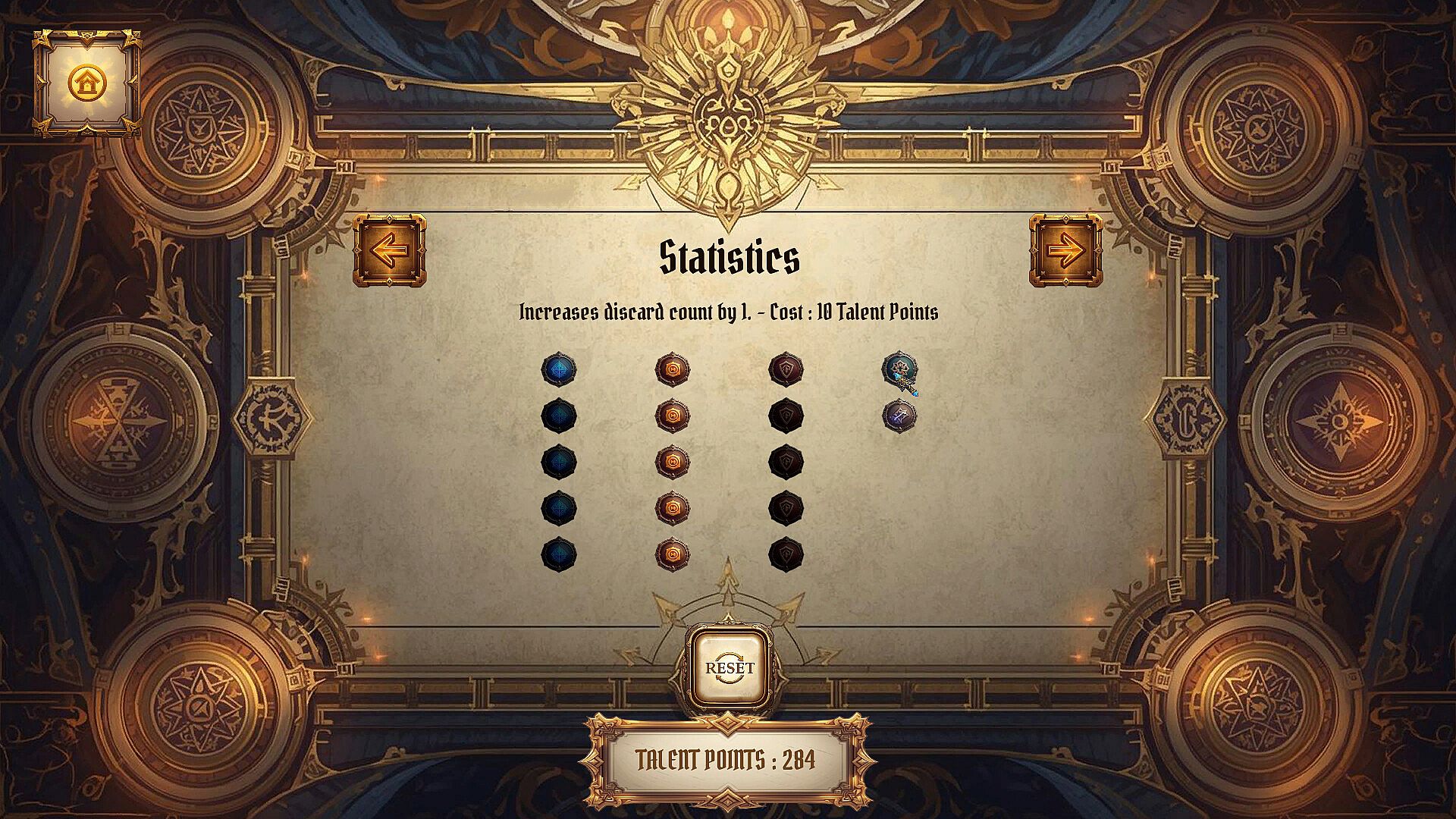 With every level up, you earn talent points. Spend them to unlock crucial permanent upgrades: boost your combinations, increase your discard limit, delay the opponent's turn, or improve your bonus gain of EXP and SYMBOLITES.