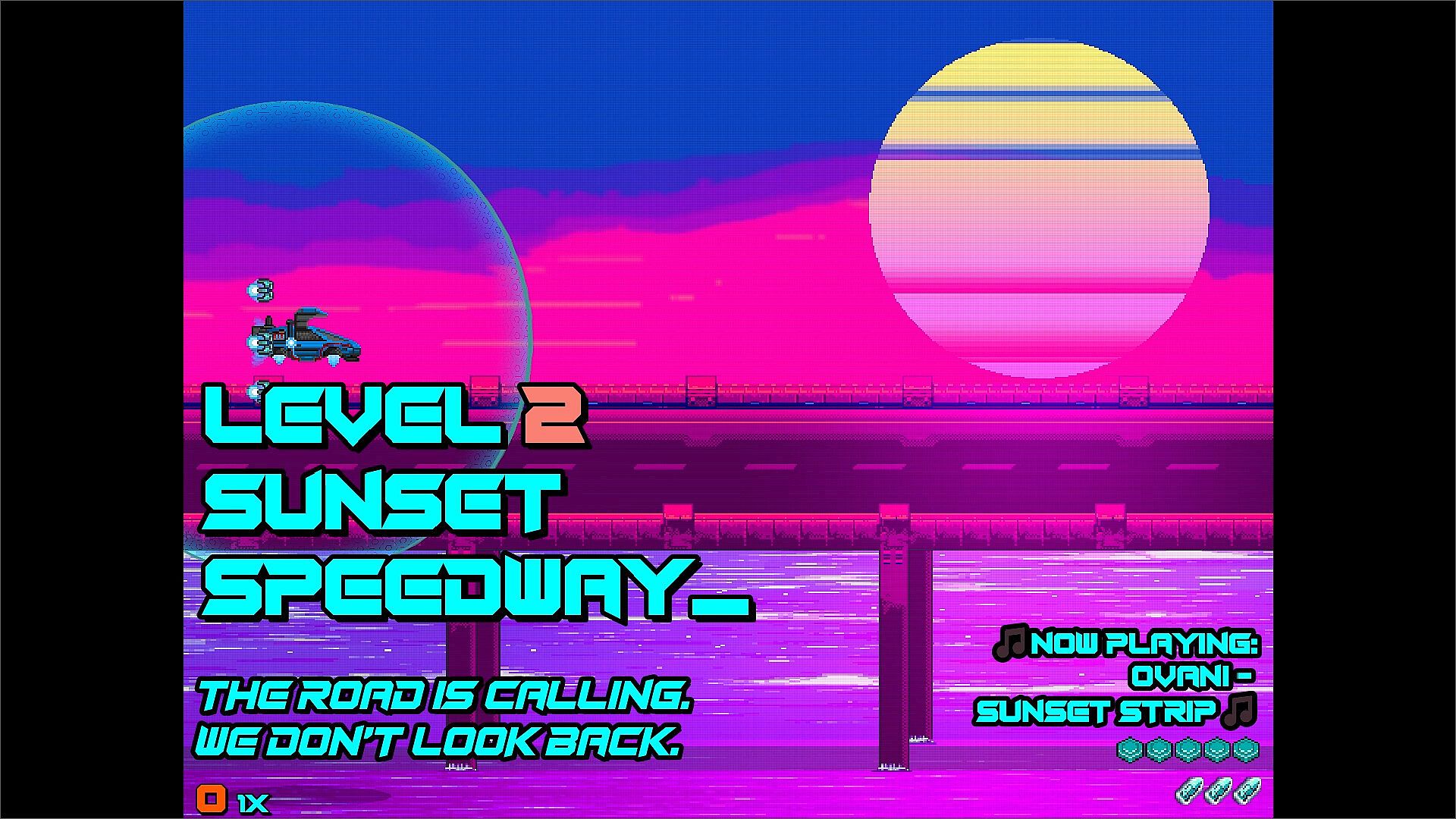 5 Levels of Neon-Soaked Rebellion: Battle through the dystopian city, race across ocean highways at sunset, infiltrate a forgotten factory beneath the mountains, ascend the space elevator, and destroy the core in orbit. Each level brings unique enemies and devastating bosses.