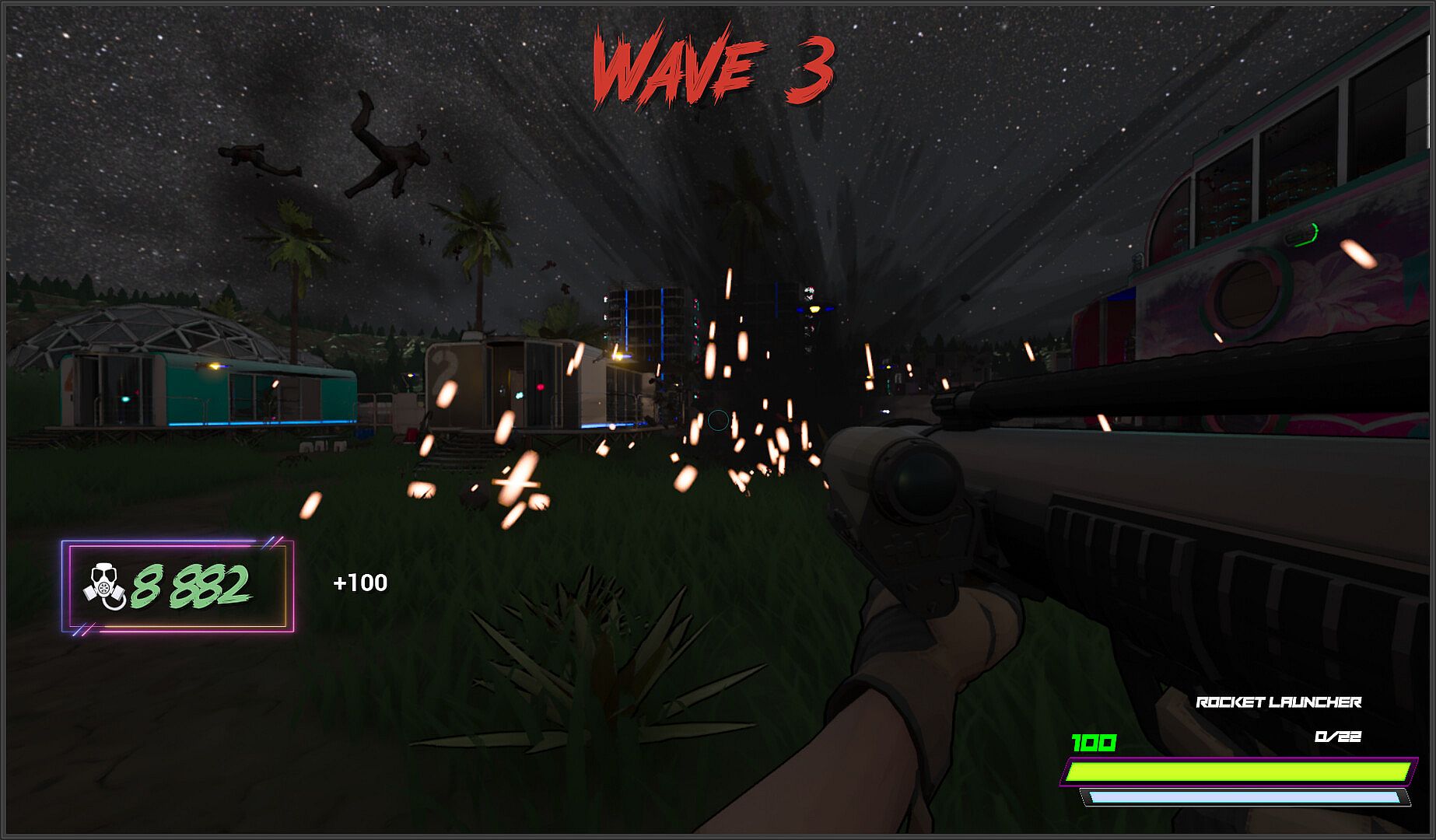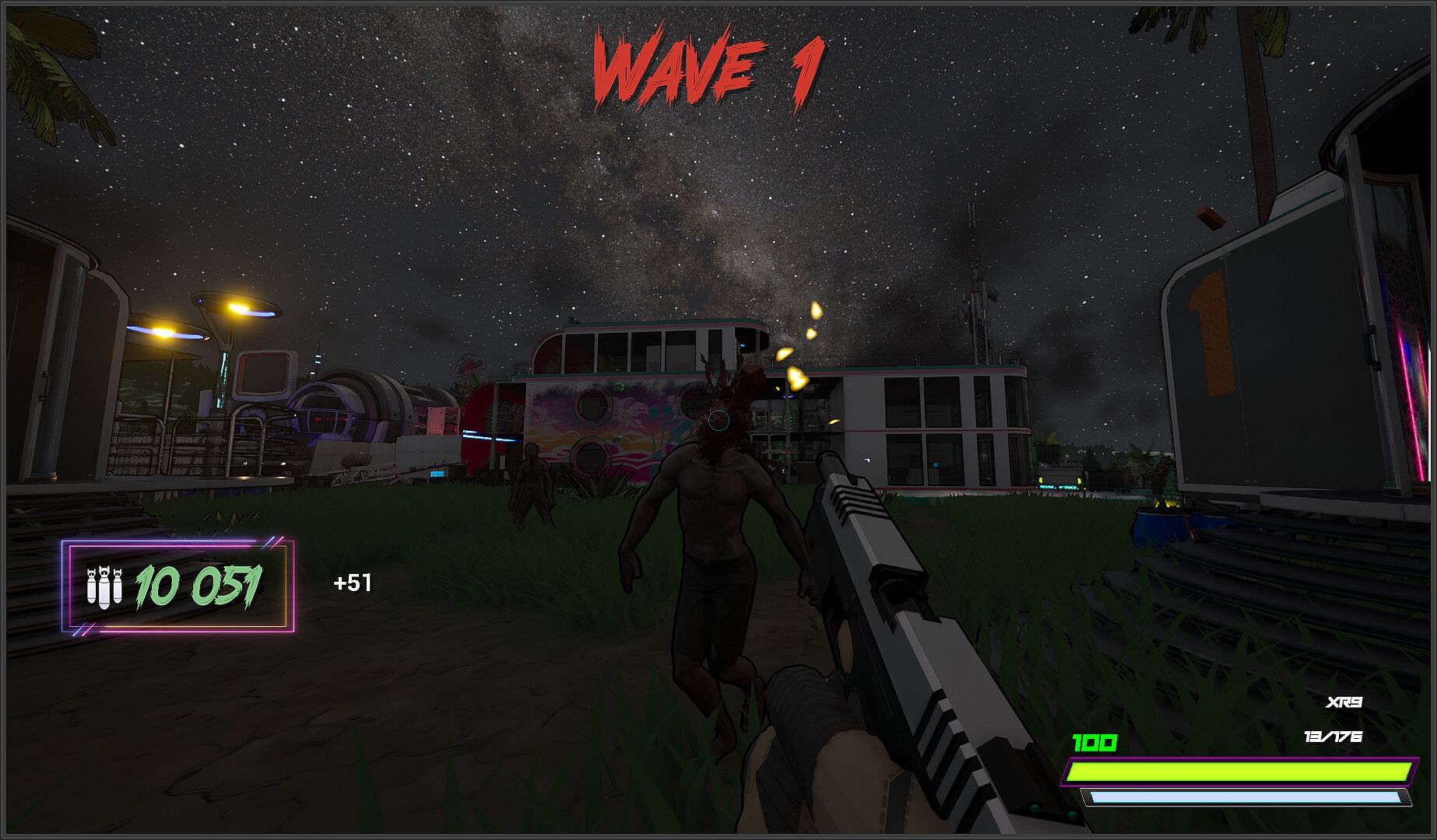 SynthwaveZ is a fast-paced, arcade-style zombie survival shooter set in a gritty, alternate 1980s world. Designed as a break from competitive multiplayer fatigue, this game lets you and up to 3 friends team up (or play solo) to fight off relentless waves of the un-dead.