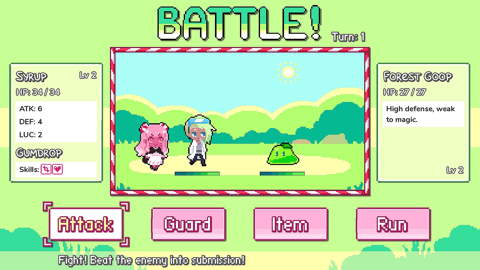 SYRUP 2: CANDY ALCHEMY RPG is a direct sequel to my 2015 visual novel, Syrup and the Ultimate Sweet. As the title implies, the series has evolved into a fully featured RPG! Synthesize candies, battle monsters, and complete quests while discovering more about the world beyond Atelier Sweets!