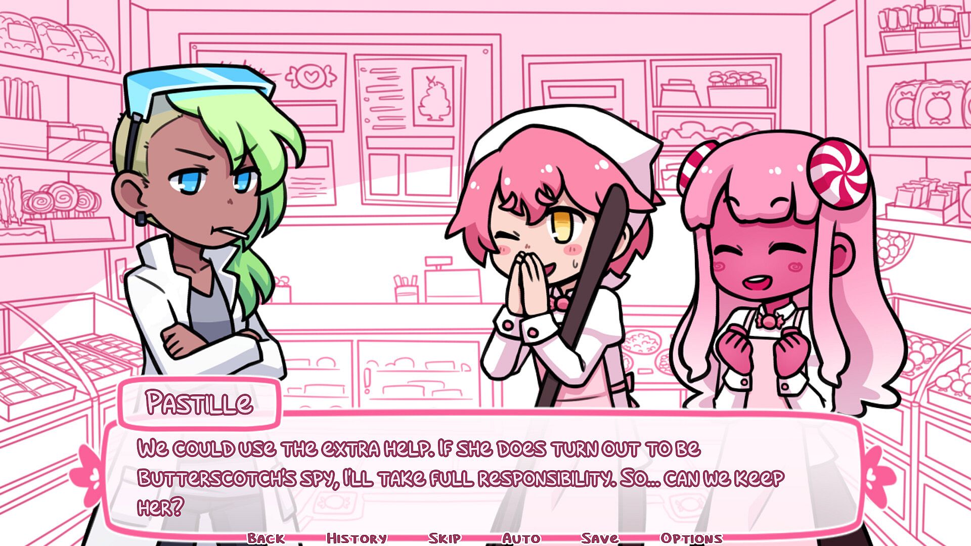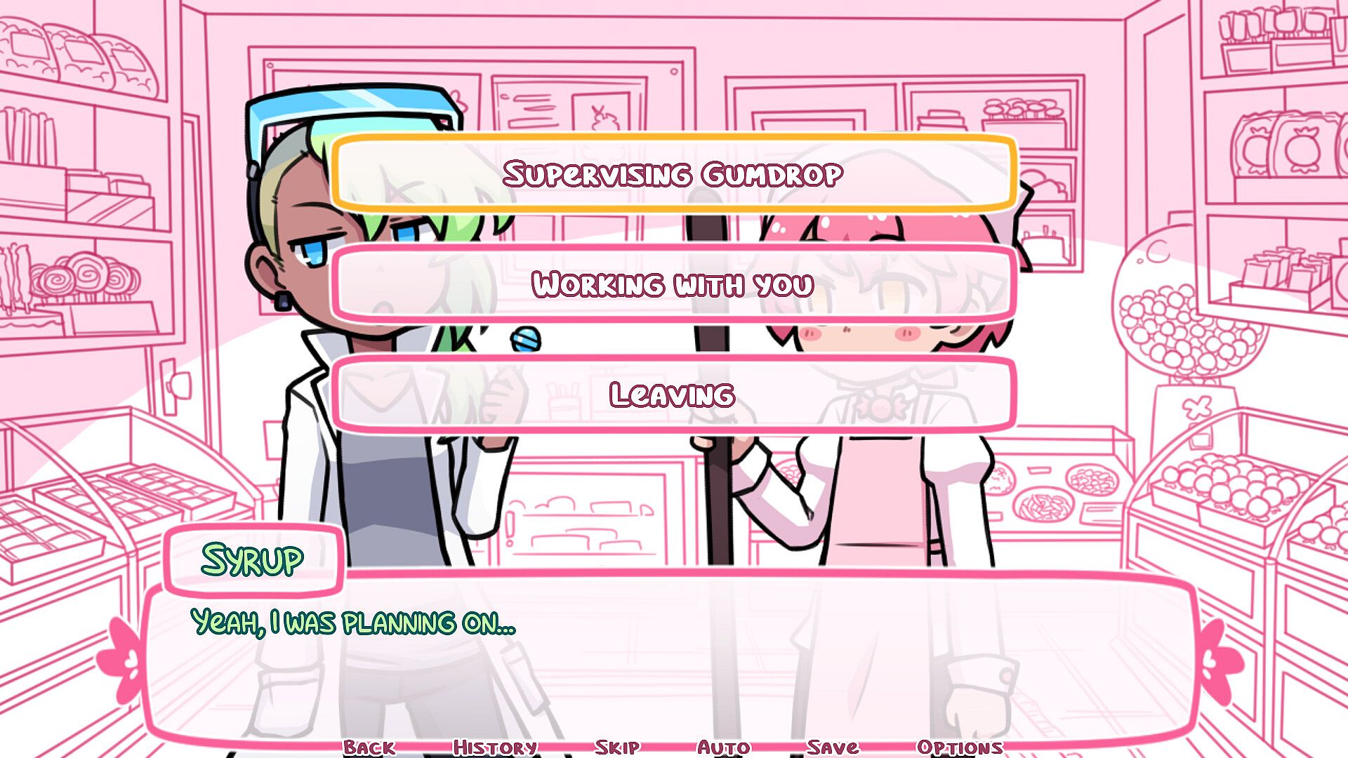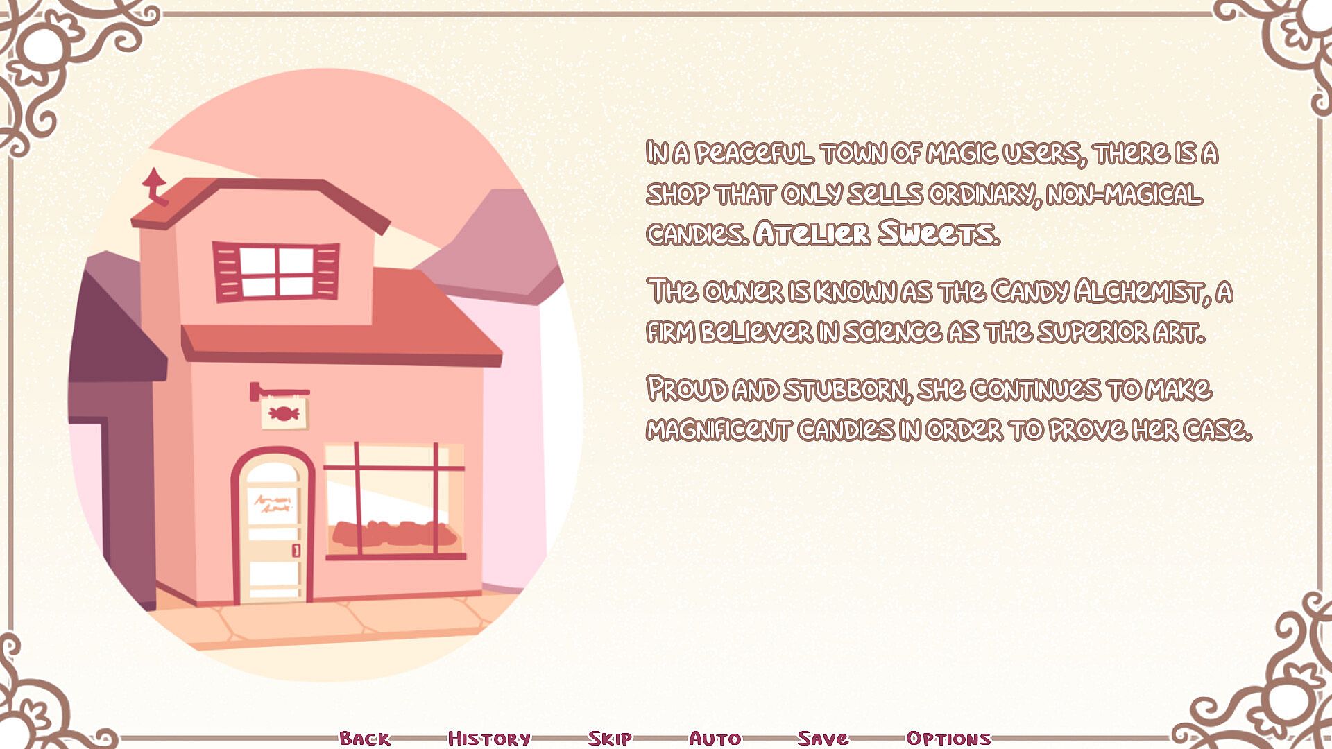 SYRUP AND THE ULTIMATE SWEET is a visual novel originally made for YuriJam 2015! It's about a candy alchemist, Syrup, who one day finds a candy golem in her basement workshop.
