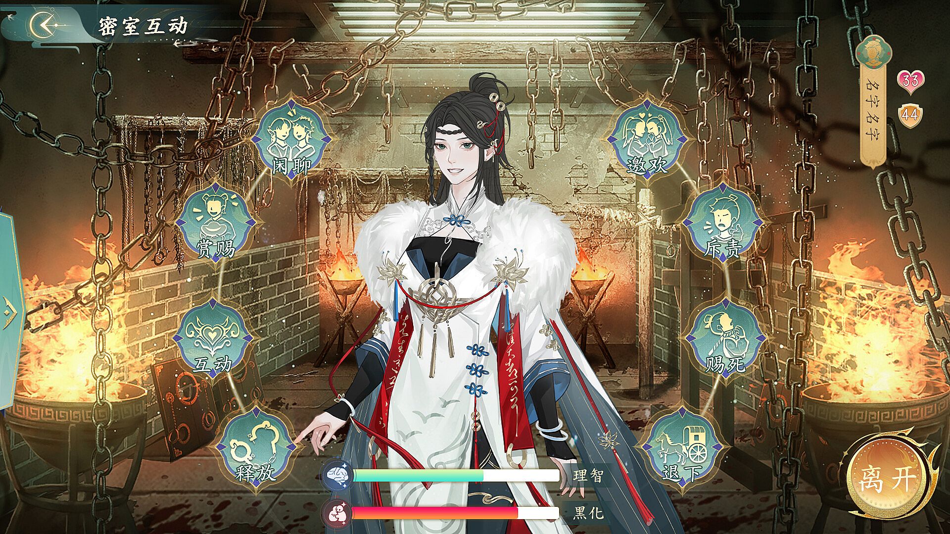 若有倾心之人,可赠礼、美言,逐步攻略;若遇仇敌,亦可挑拨、下毒,使其身败名裂。甚至,你可以将任何人绑入密室,对其“审讯”,降低Ta的理智值,彻底击溃其心防,让Ta只为你痴迷。