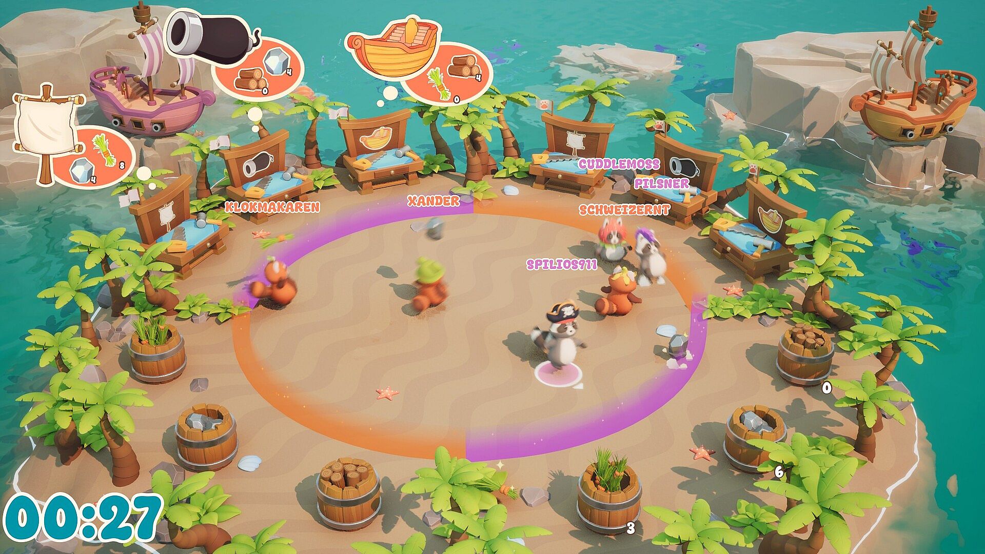 Challenge friends to compete for the title of Island master! Battle it out in teams in this chaotic party fiesta on tropical islands and the open seas. Play as the Raccoon Rascals or the Puckis Pandas in vibrant and stylized 3D environments.