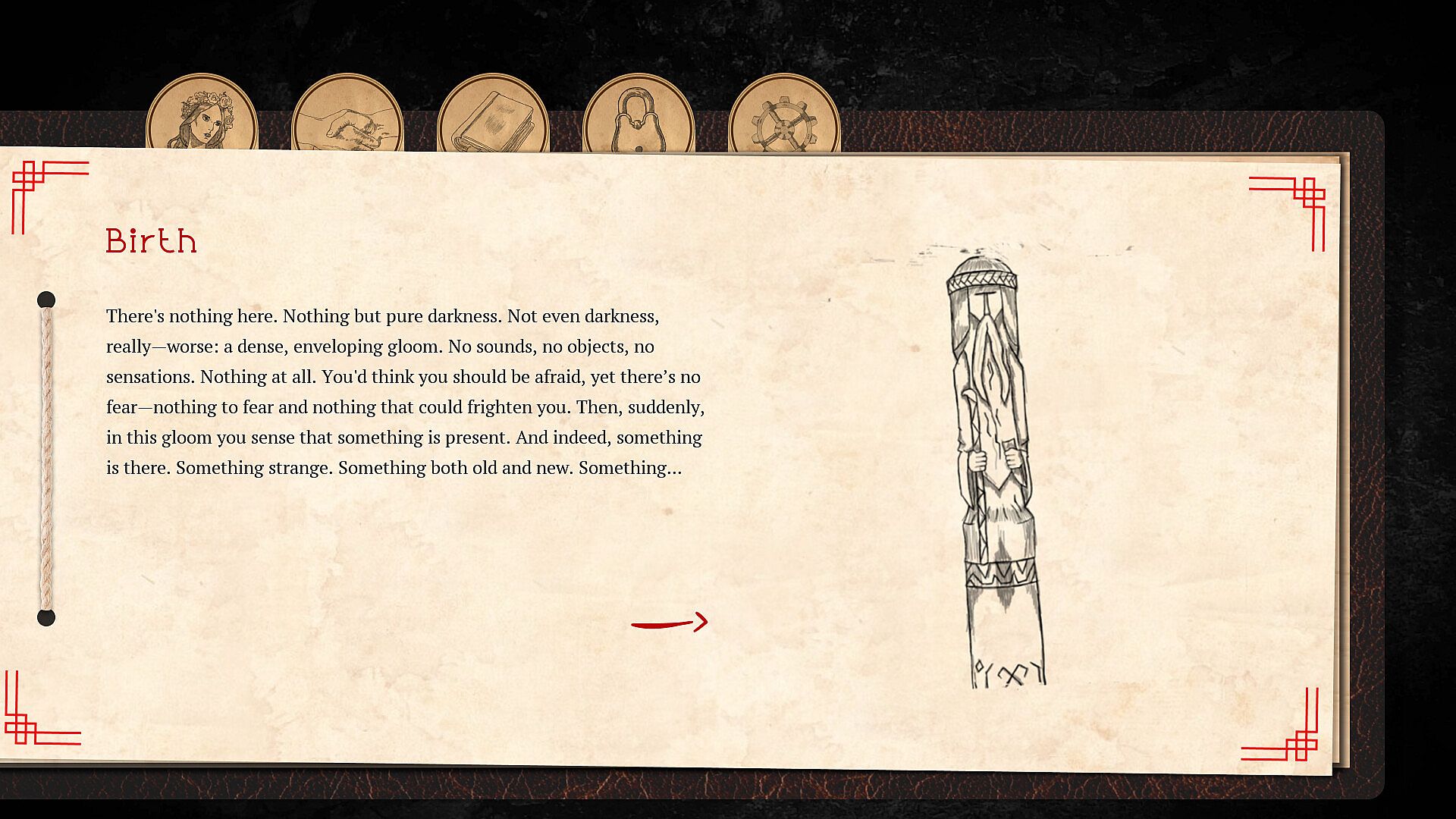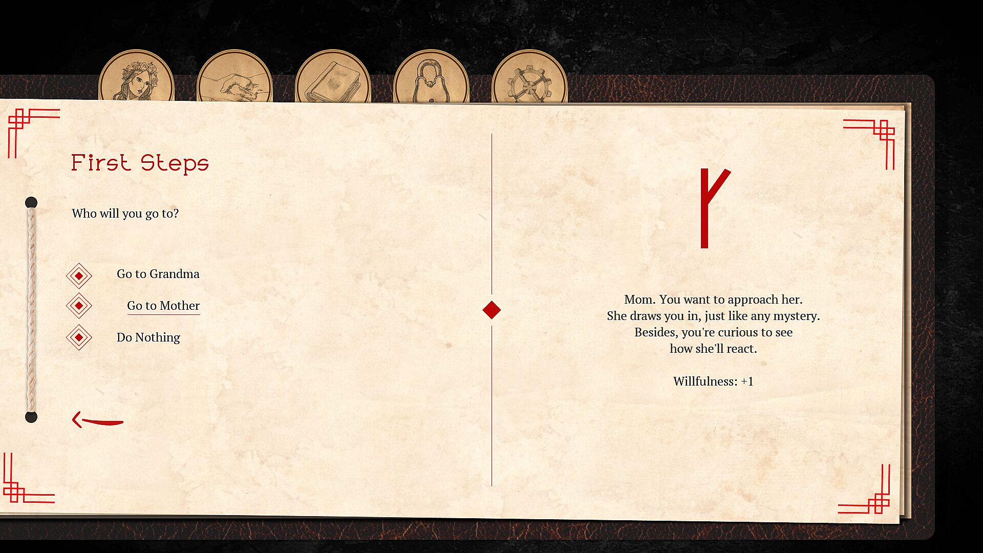 Fate casts its dice—and I see. I see that you'll take on the role of a girl. Hair like fire, born in a black hut near the graveyard. It's no easy role, and your choices are many: will you be kind and gentle, or wild and willful? Will you serve others, or seek only your own gain? Or maybe you’ll walk a third path… Time will tell. Your fate is yours alone. It depends on you—and your strength.