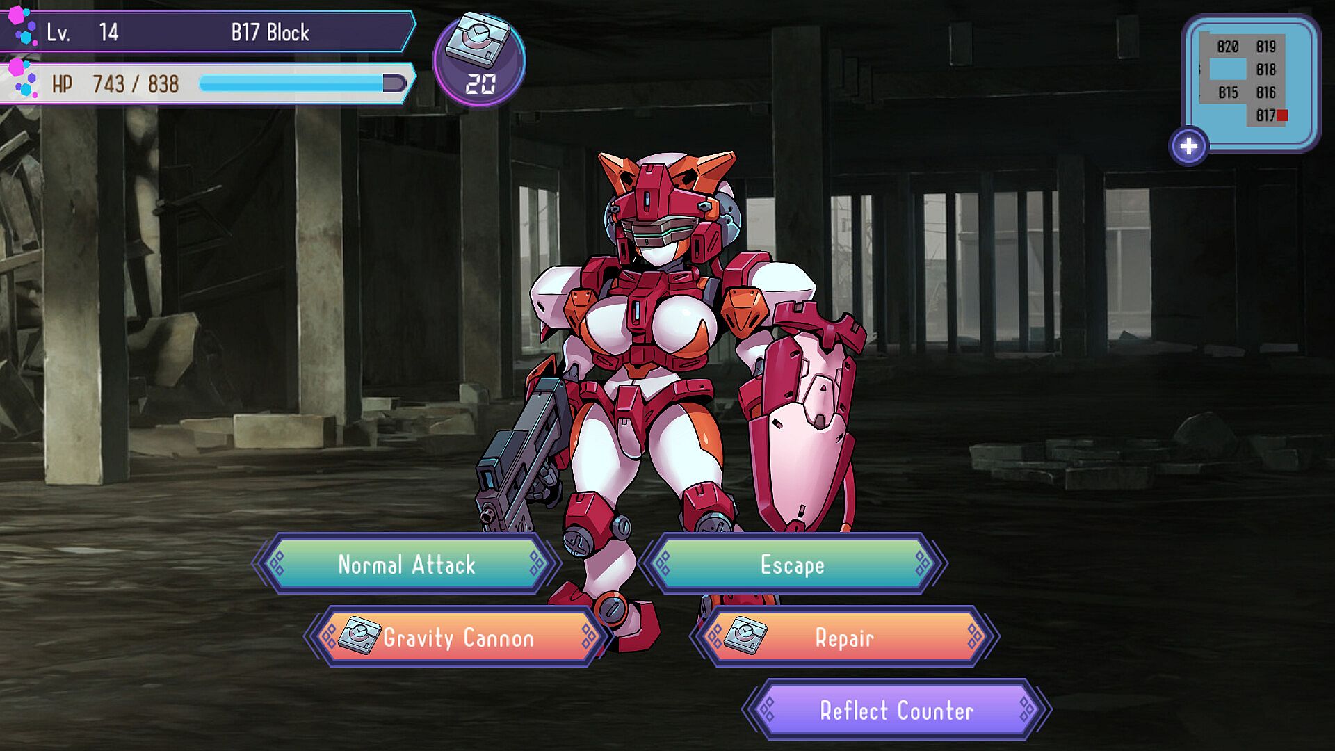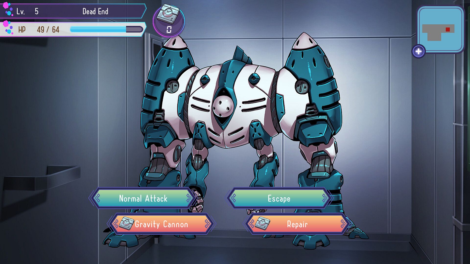 Usable skills in combat include the Gravity Cannon and Repair.