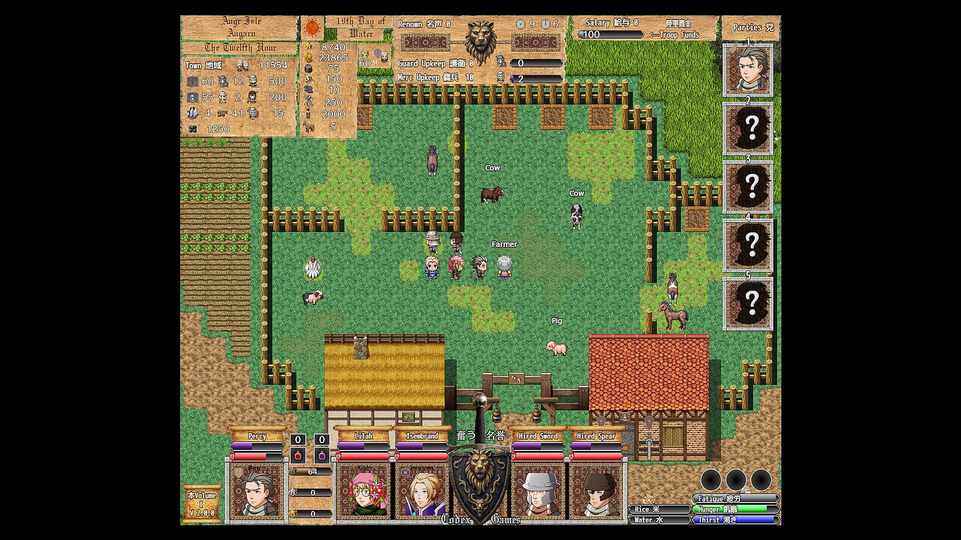 * Field Warfare: There is a Field Warfare aspect integrated in with the traditional Side View Battle System whereas the town may get attacked by rebels.