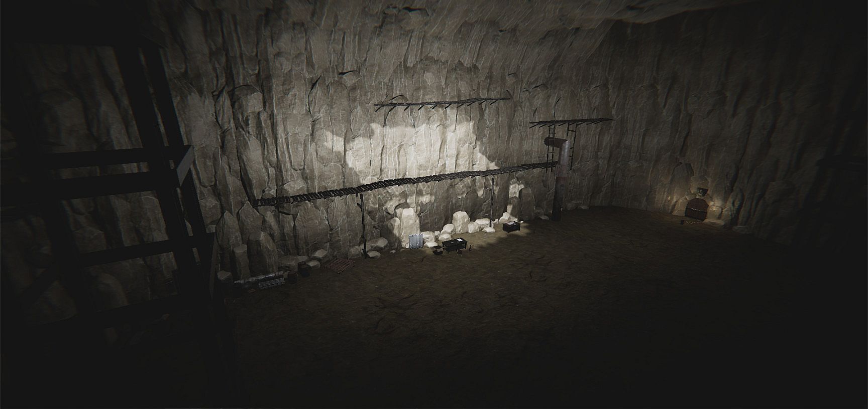 In 1964 the black rock mine in Yokon was closed due to a landslide, people and gold were lost forever inside it. The legend says that the miners trapped inside protect the gold ever since as “living-dead”. Many have tried to retrieve the gold, but none have succeeded. After many attempts you manage to find an old corridor that descends into the depths of the mine, but a landslide trapped you inside. Your only hope is to get the old elevator working, find a way to get out quickly because oxygen is running low!