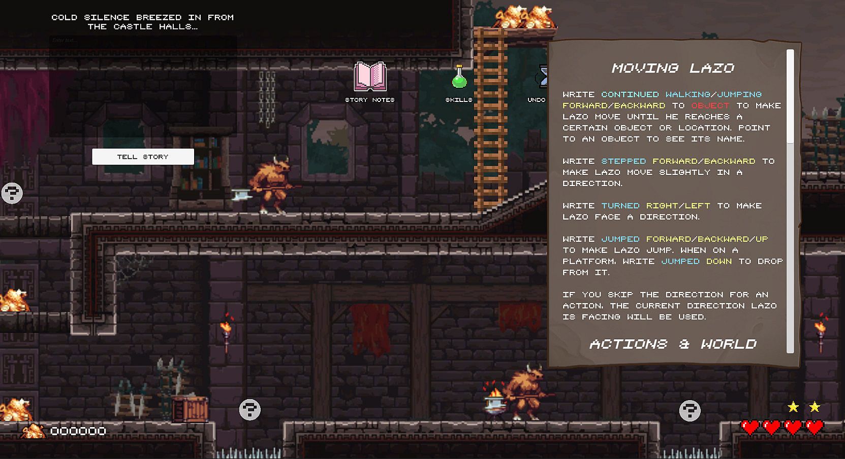 In Tales of Lazo, you will be telling the story of the brave hero Lazo. You can use any words in between to make the adventure truly sound like a story!