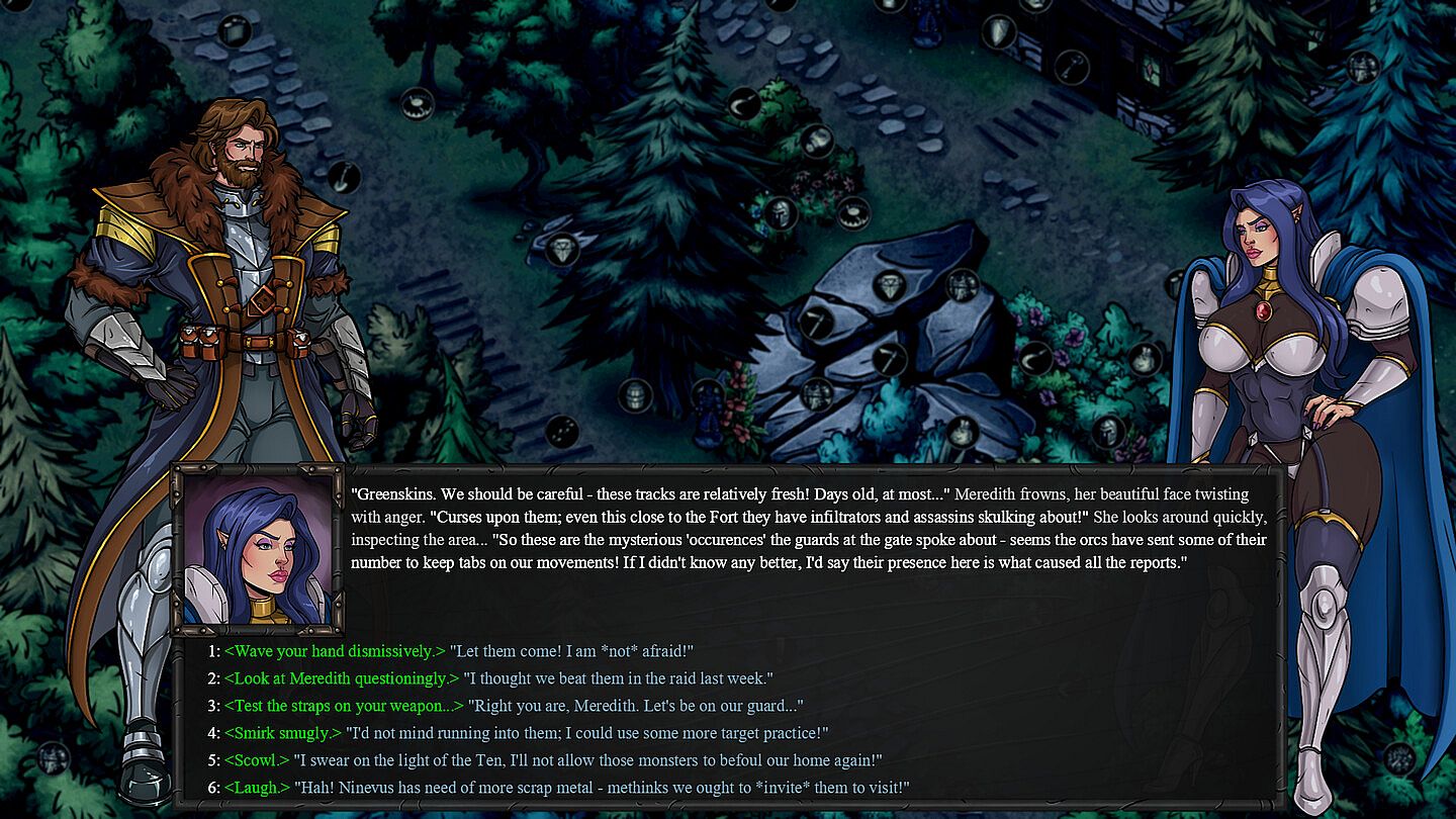 Dominant / Romantic / Submissive paths have also been woven into encounters to further spice them up! You can choose Maledom / Romance / Femdom to resolve some quests via sex! This won't always be the case, but it's present often enough to give you a fun sense of progression and freedom in how you handle things... along some extra spicy sex-scenes!