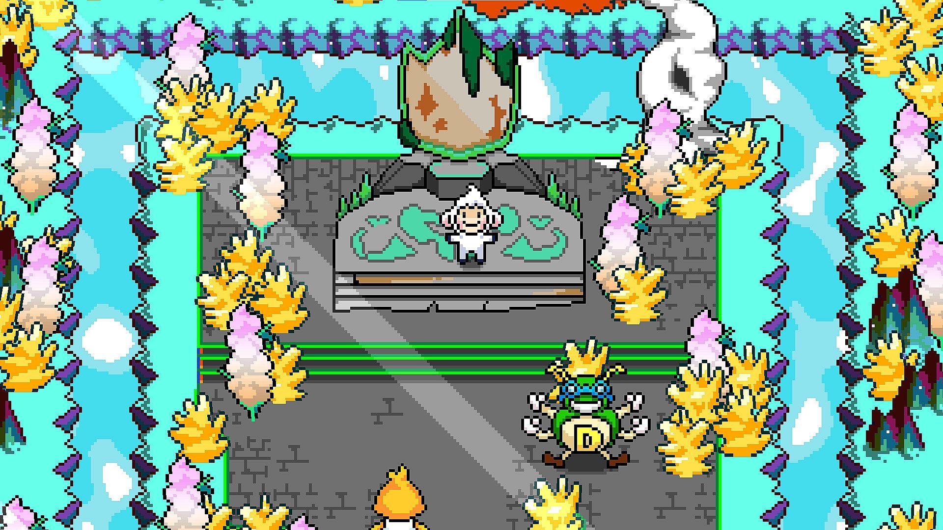 Face enemies in fast-paced bullet-hell battles, featuring colorful and imaginative attacks.