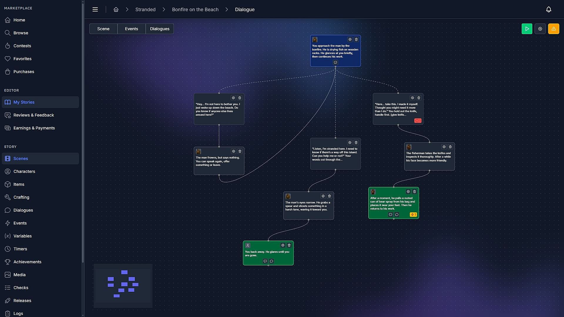 Talescape is a creative platform that lets anyone build and share interactive stories, without writing a single line of code. Write scenes, craft choices, and shape entire worlds through a visual editor designed for writers, not programmers.
