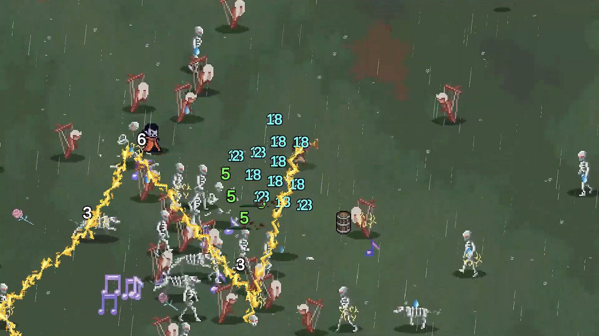 Play as a spell-slinging bard performing for your life. Compose rhythmic spell loops, defeat endless hordes, and keep the crowd entertained. When the applause stops, the curtain falls.