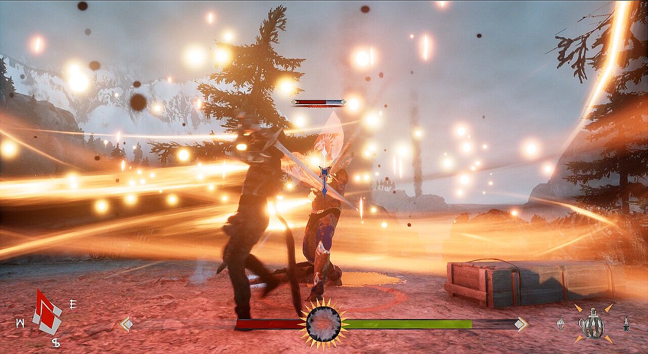 With four directions of attack and defense, the combat of Talon's Blade provides both a strategic and reactionary gameplay experience. Overwhelm your foe with a flurry of strikes, or wait for them to make the first move and punish their attack with a well-timed parry. Feint your attack to throw your opponent off balance or kick them off a ledge. You can focus on increasing your combo to cast a devastating spell or take an elixir to empower each strike. Feel the flow of combat as you deflect incoming attacks and respond with lethal strikes. Explore the strengths and weaknesses of each foe, looking for an opening to execute the killing blow.