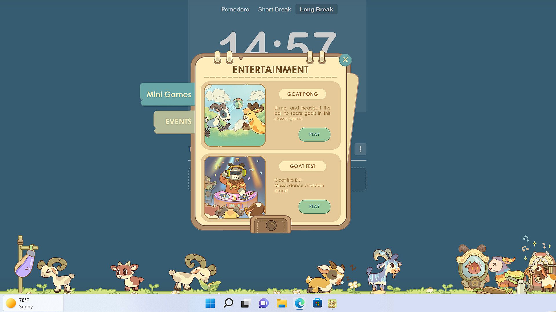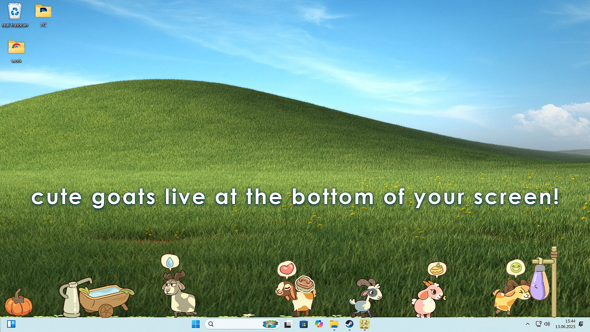 Tame-a-goat-chi is a relaxing and irresistibly cute goat-tending game designed to run right next to your tasks. Whether you're answering emails or watching videos, your goats are always just a glance away.