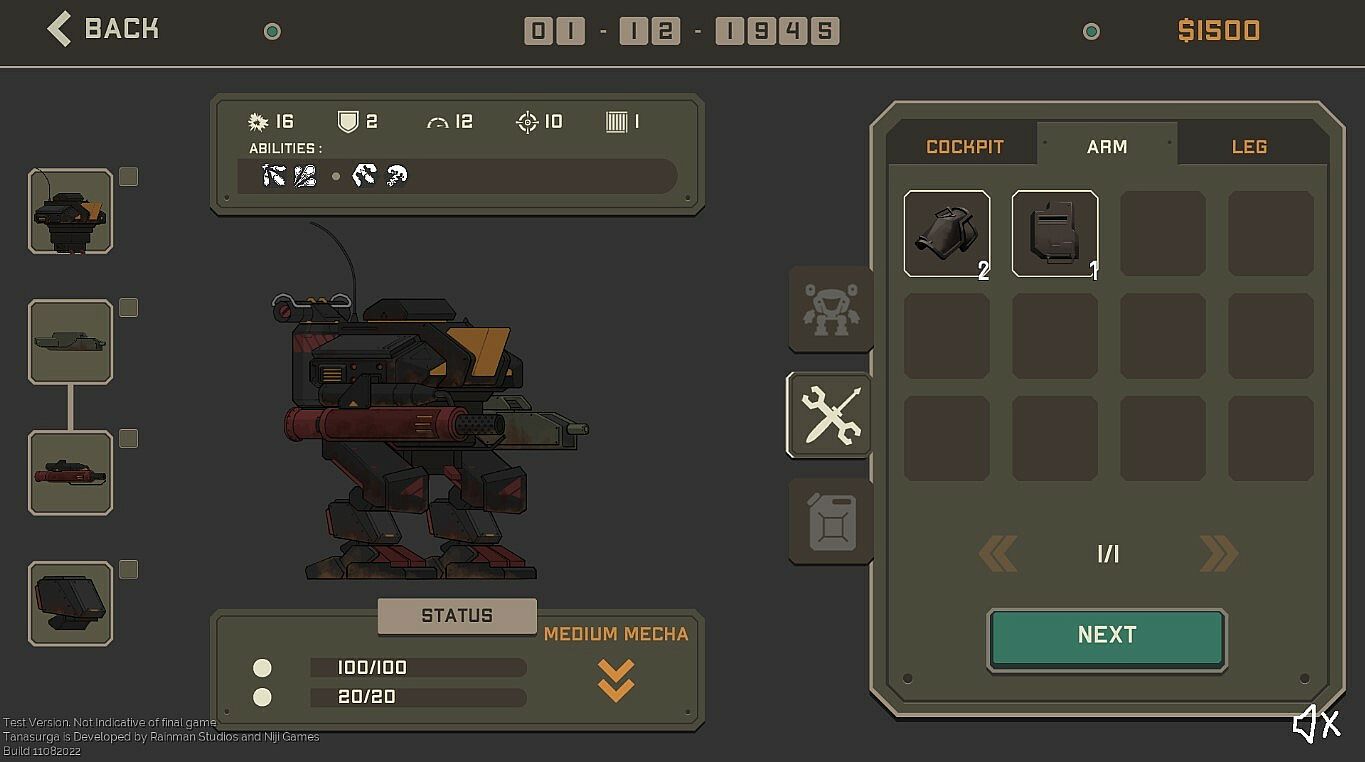 Over 100+ different mecha parts and 3 different type of mecha base. With different types of function and stats. Build your own combination of mecha to suit your own strategy. Different pilots will also affect how they use the mecha, so plan your mecha strategically. You can acquire more mecha parts during missions or buy them from the black market.