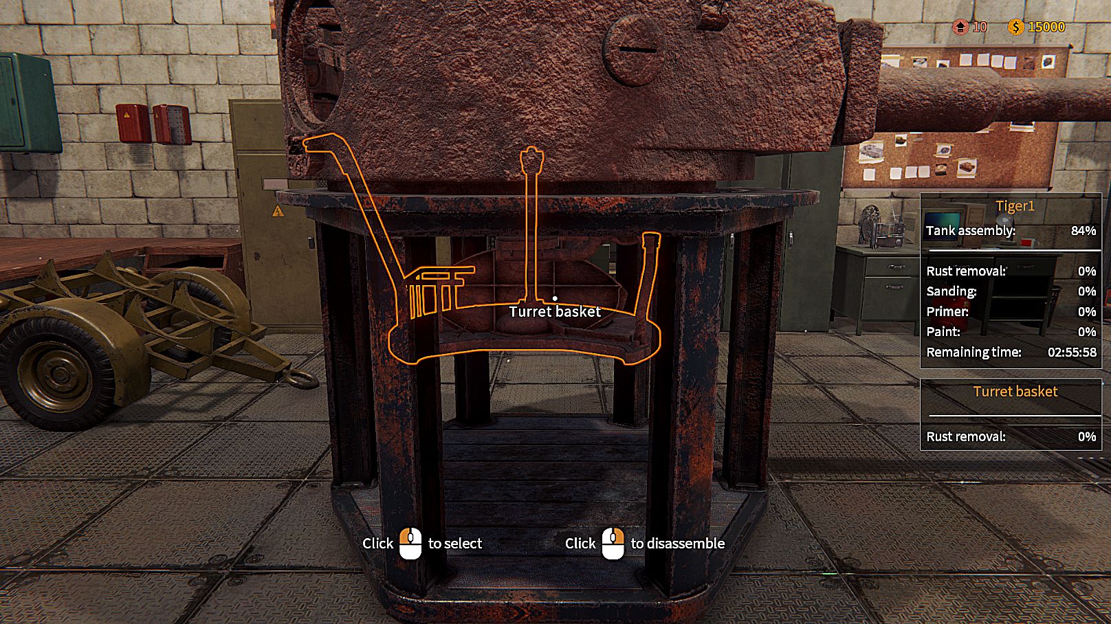 Use tools and take each tank apart. You can disassemble tank exterior parts, from the bottom (wheels and tracks) up to the turret (gun, barrel, gun cradle etc.). Additionally, the interior of the tank is also available to be renovated, the crew space, tank engine and tank drive system.