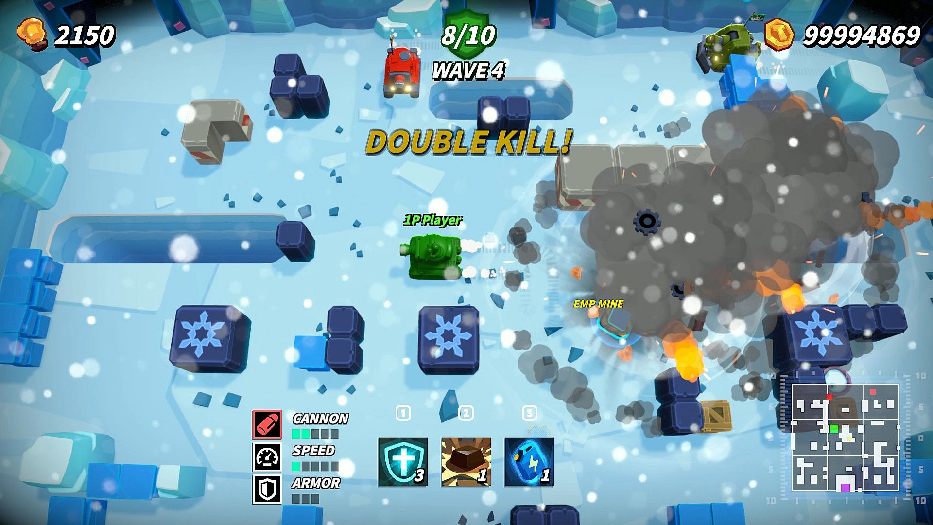 • Battle Defense – PvE Mode Need some release from the constant PvP struggles? Take on these crazy AI tanks! Protect your base at all costs! No internet access? No problem! Battle Defense is fully playable offline! Team up with a friend for double fun! (keyboard and game pad required for 2P version)
