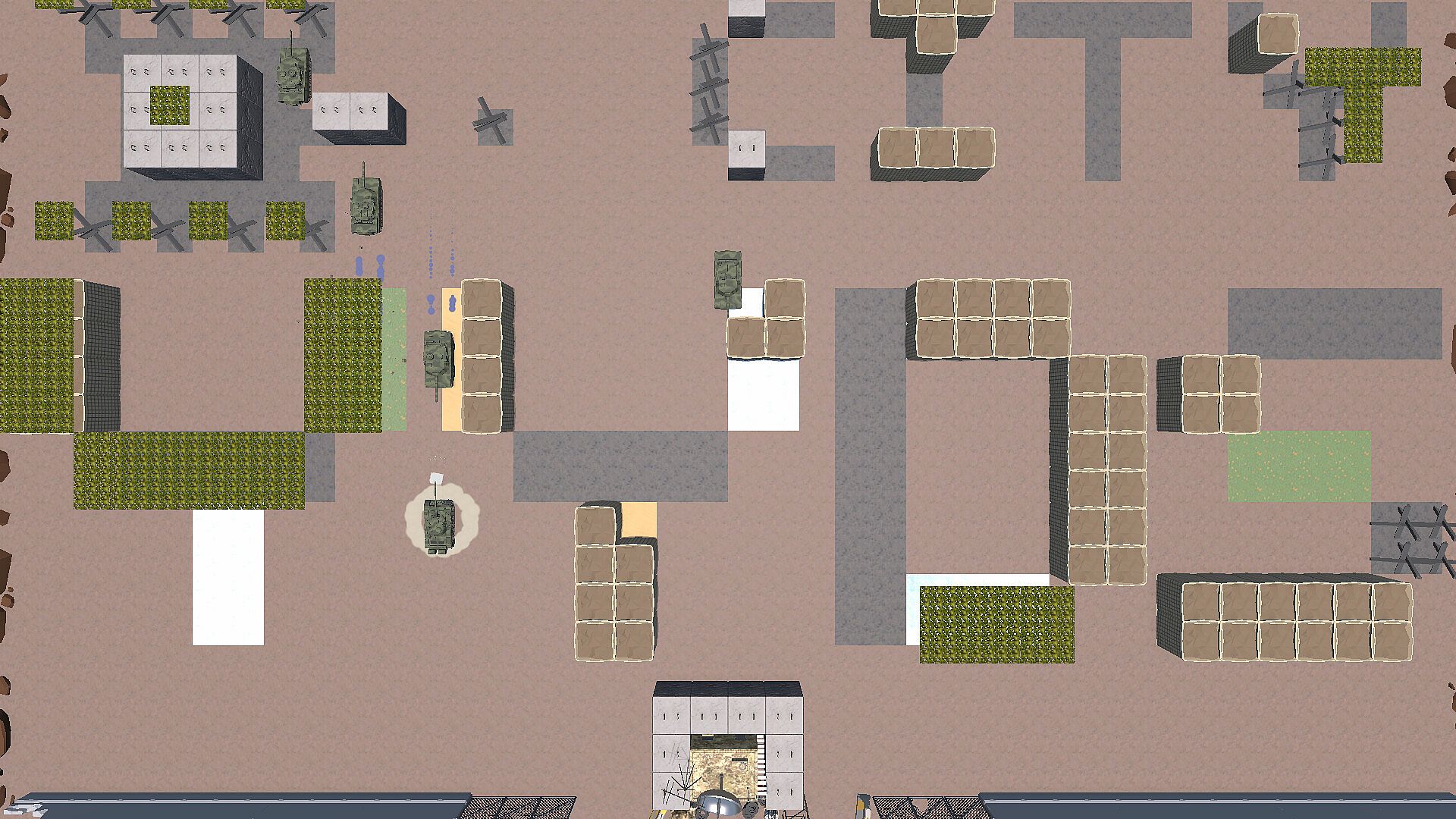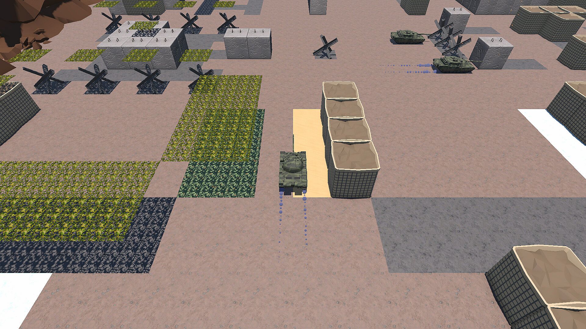 The game contains various obstacles, including blast walls, anti tank walls, anti tank barricades, and anti tank trenches (water), each with different characteristics. At the same time, it contains various terrains such as mud, sand, and snow, which will have different impacts on the tank's movement. In addition, camouflage nets can be used when concealment is required.