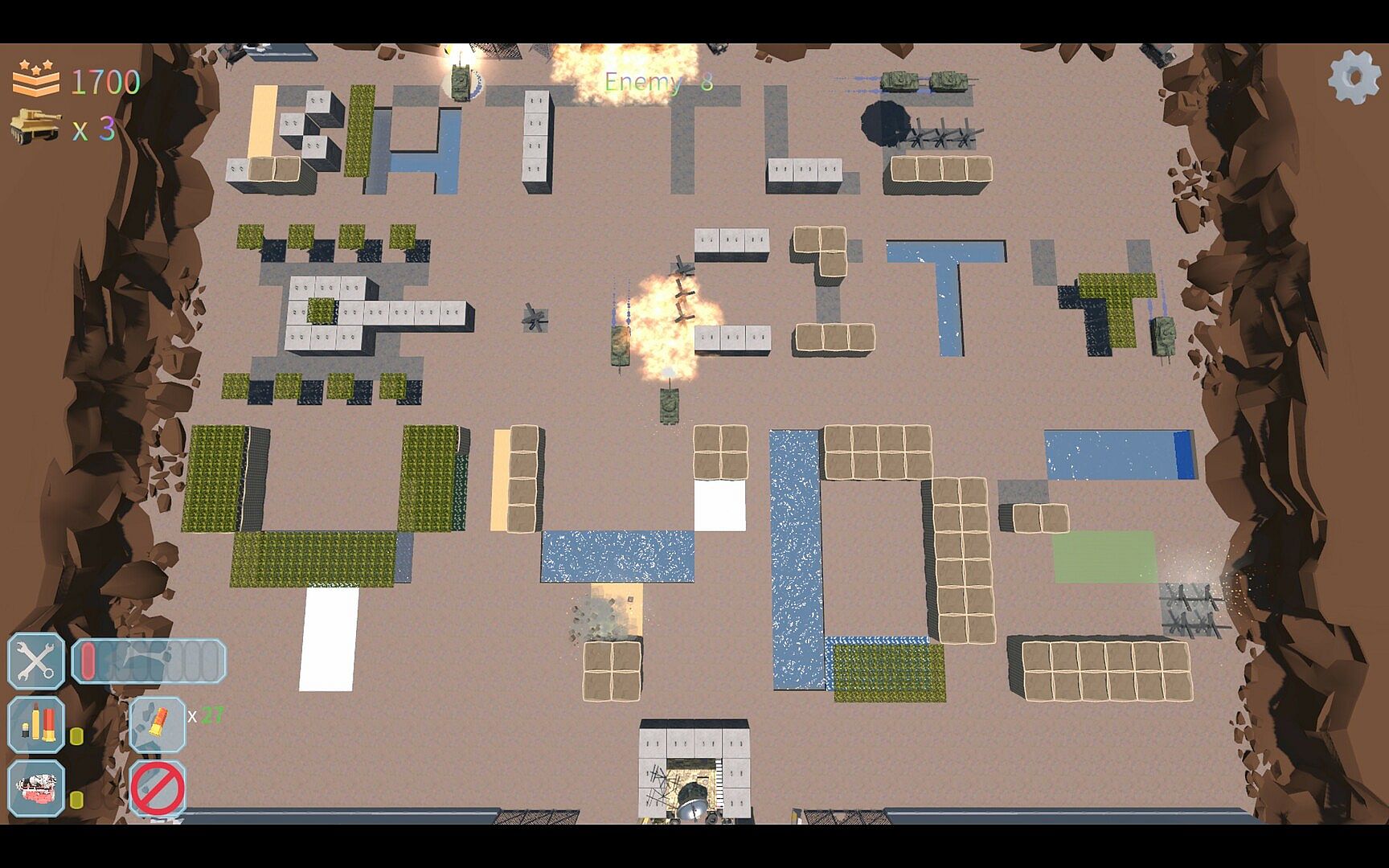 Tanks come in various models and can use different types of ammunition, such as incendiary bombs, High-Explosive Shells, armor piercing bombs, landmines, etc. Different ammunition can deal with different scenarios and create special effects on obstacles. Please explore to your heart's content.