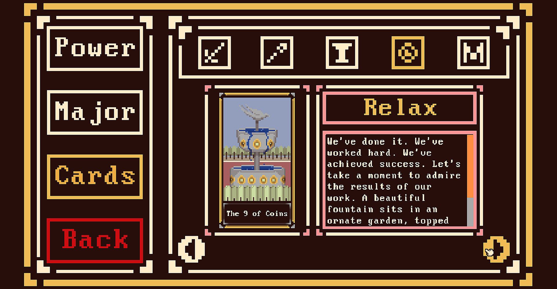 Use your Tarot cards to affect the tide of battle! Minor Arcana provide status effects, buffs, debuffs, and terrain effects. Change forms using Major Arcana to unlock new moves!