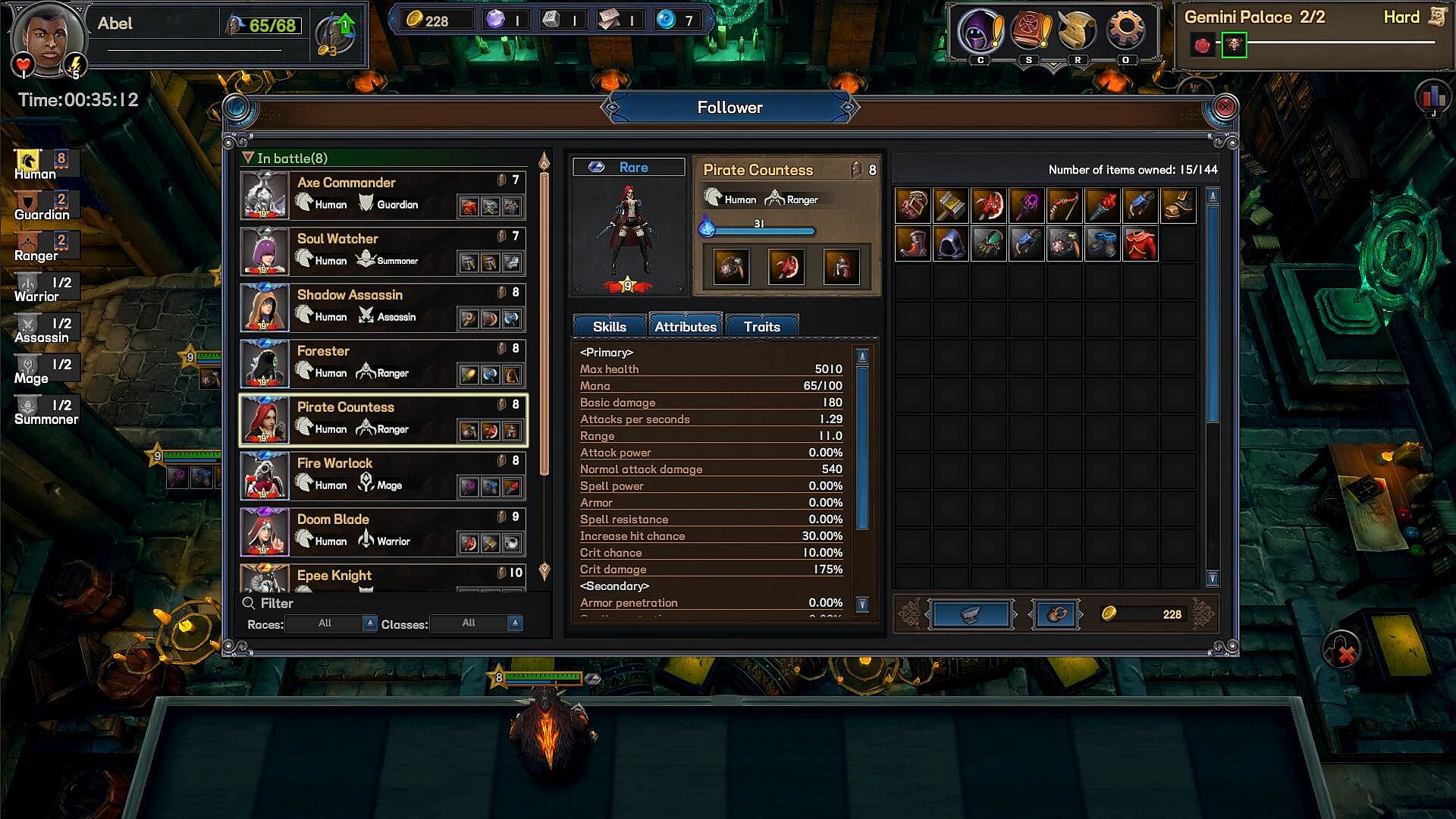 More than 35 of different followers can be used in the game, collecting their souls in battle to promote stars, activating their race synergies and class synergies to enhance combat effectiveness.Each equipment has special attributes, and three equipments can be combined to improve their quality.