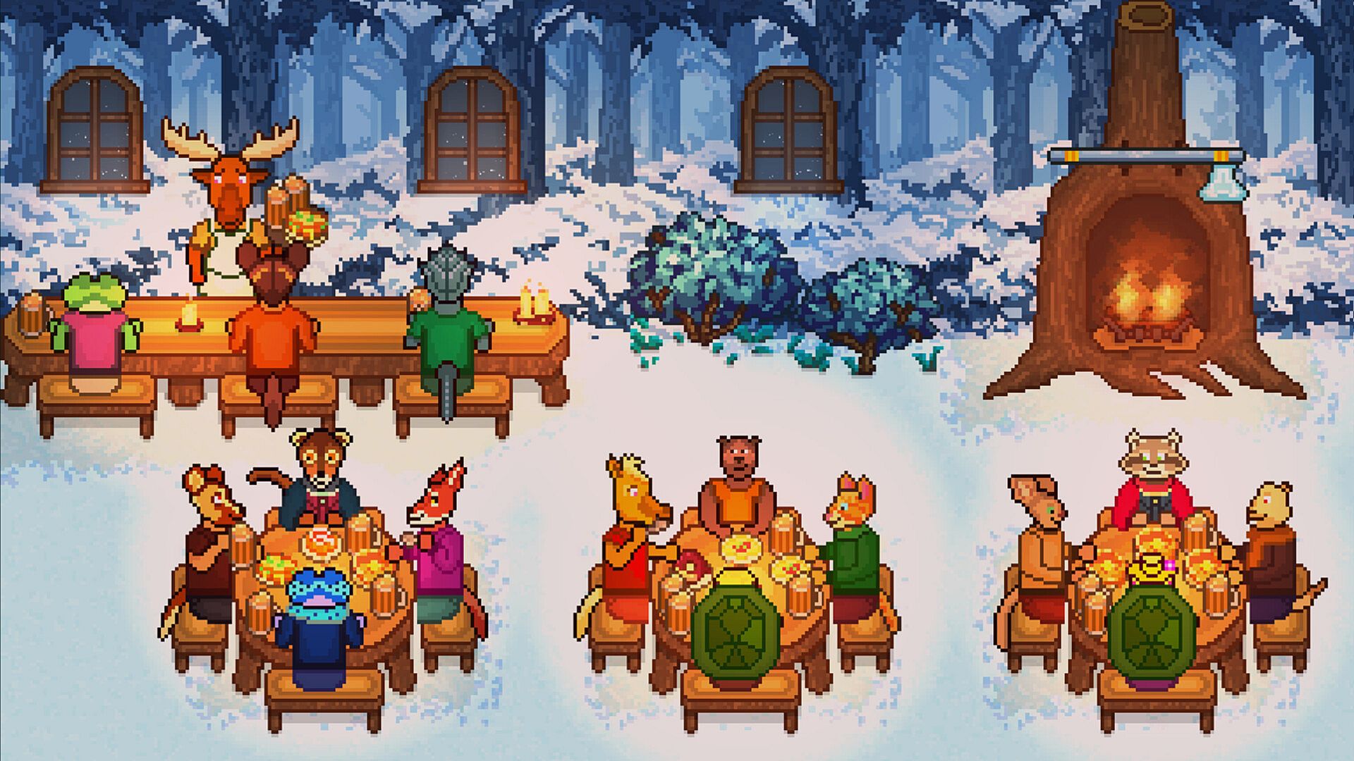 25 unique NPCs: Turtles, raccoons, otters, horses, and other critters visit your tavern