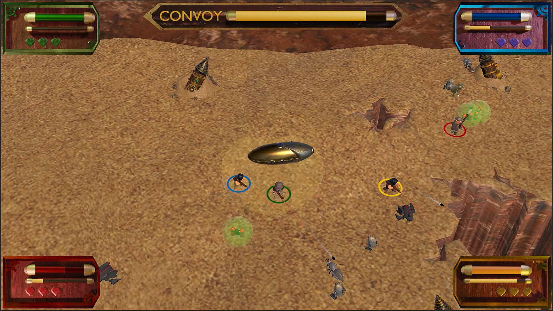 Guardsmen defend vital convoys carrying resources to struggling towns in a kingdom ravaged by steam and coal-driven climate shifts. Players team up to eliminate raiders, grab powerups for protection, and gather enemy-dropped fuel to keep the convoy moving or restore health. Choices matter: fuel the group or heal solo amid waves of varied threats. This free-to-play action adventure blends casual teamwork with local multiplayer for up to four players using controllers. Singleplayer works with mouse and keyboard or a controller on PC. Casual gamers who enjoy cooperative defense and quick resource decisions find a solid fit here.