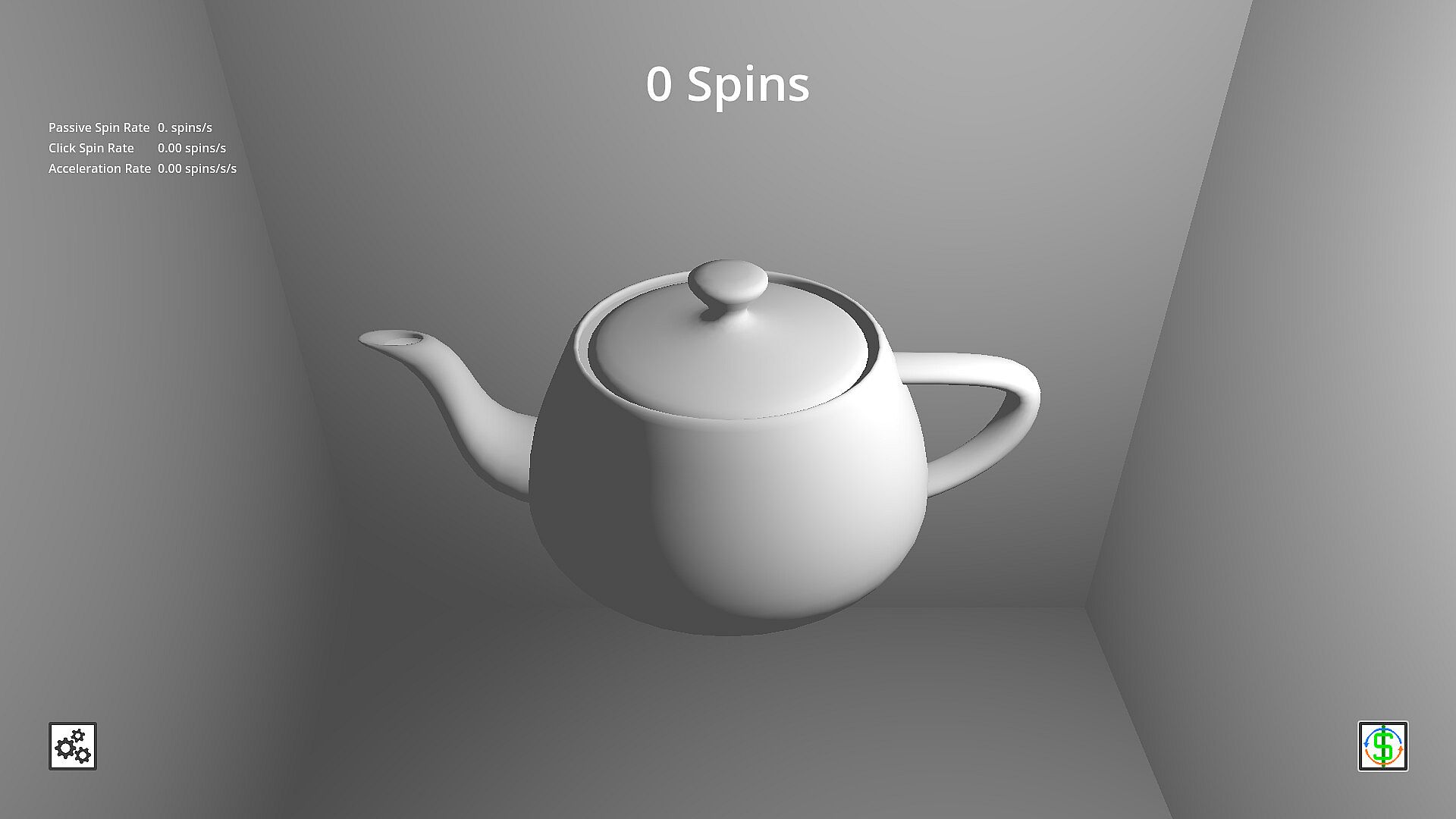 Click the teapot to spin it- it’s that simple. The teapot uses velocity-based physics, so the more you click, the faster the teapot will spin, and the quicker you can get those juicy upgrades- keep clicking that teapot!