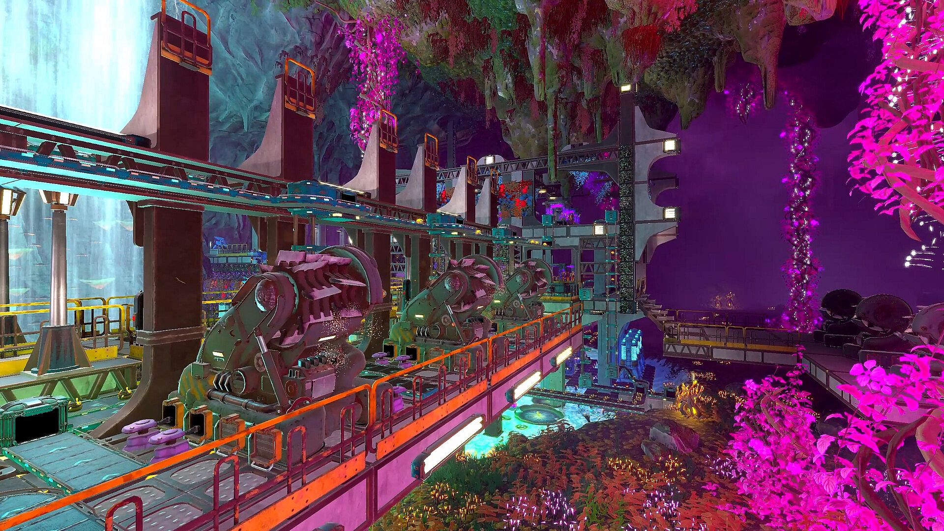 BEAUTIFUL WORLD. Explore the cavernous depths of Techtonica surrounded by bioluminescent flora in first-person.