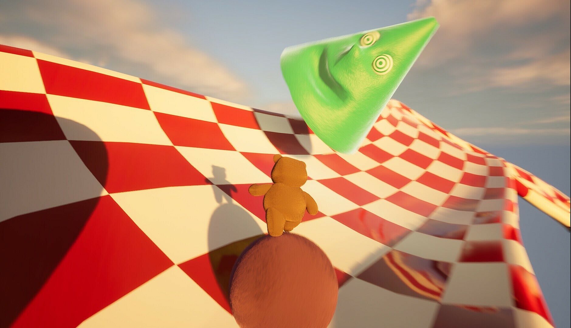 Make sure Teddy stays on the rolling ball, as strange figures seek to knock him off balance and push him aside.