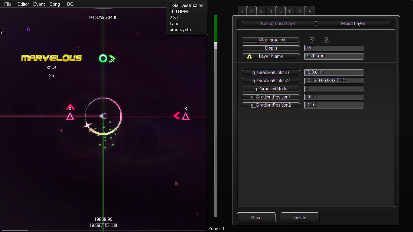 • A level editor with extensive tools to allow detailed filters, shaders, and backgrounds