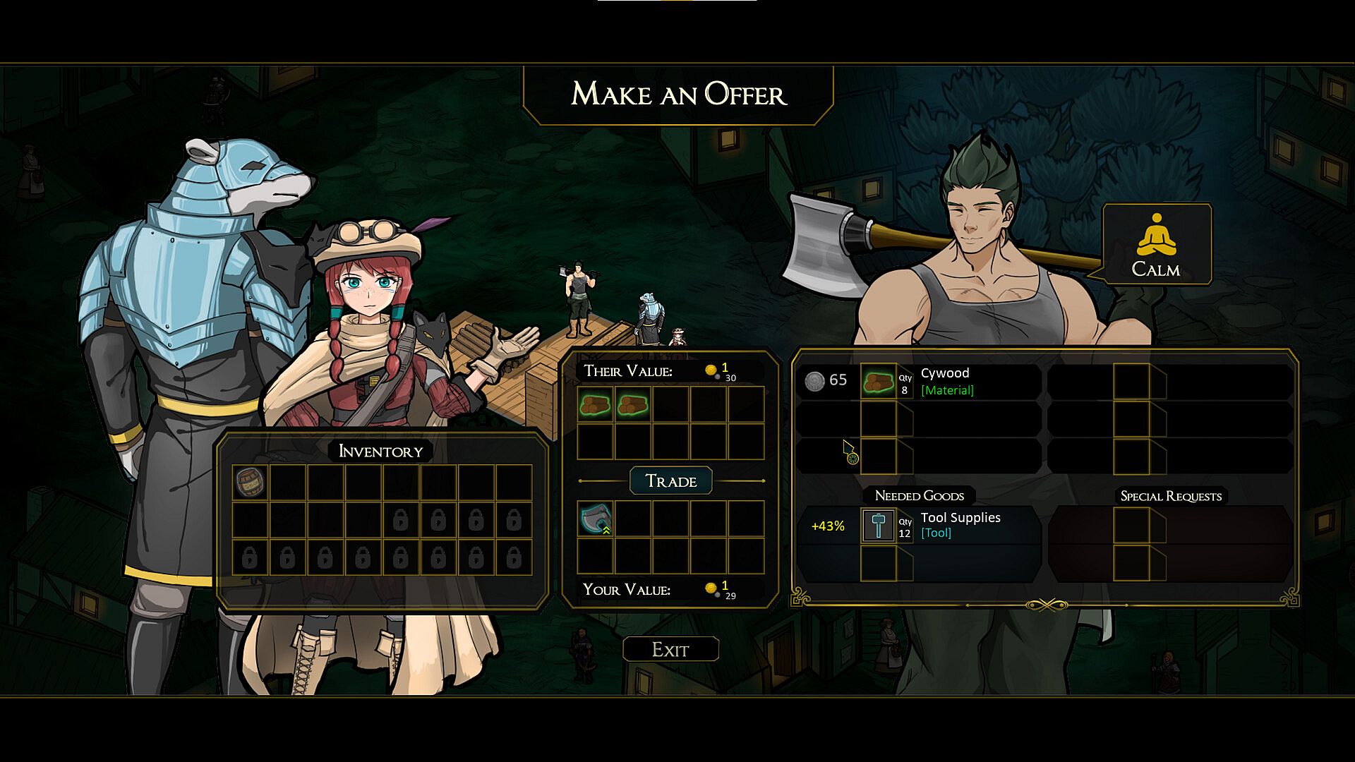 Master the art of trading between settlements with resource and inventory management. Barter goods directly with traders while balancing their moods and needs. Knowing what goods and when to offer them is the key to a successful trade.