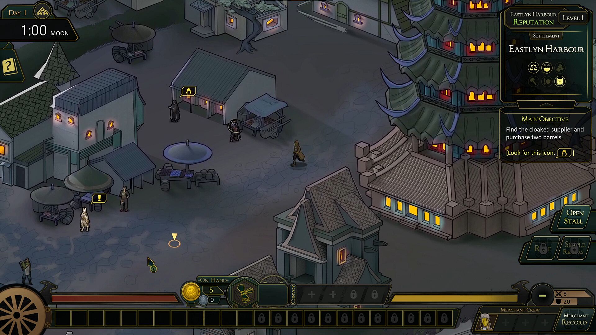 • Hire and assemble various guards & travellers and build your merchant convoy to aid you on your travels.