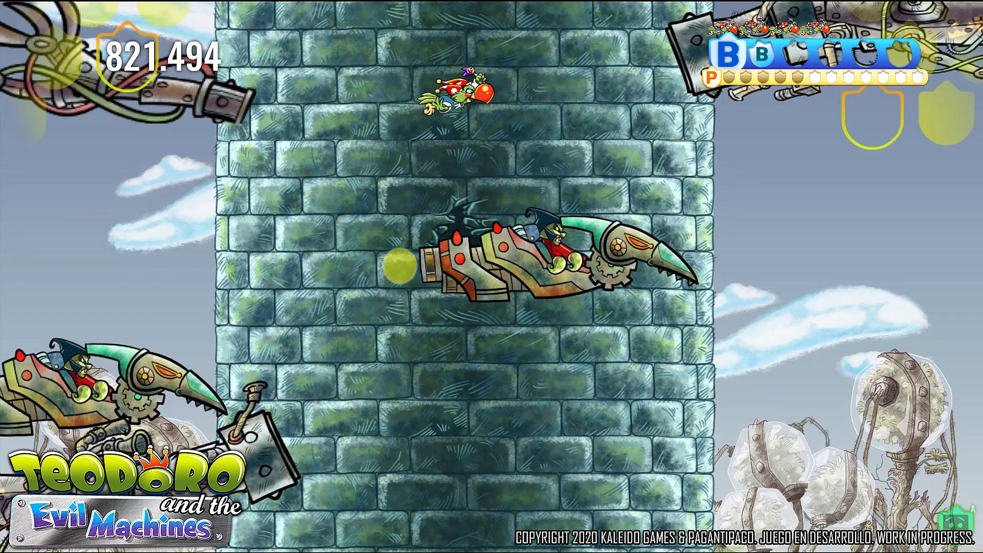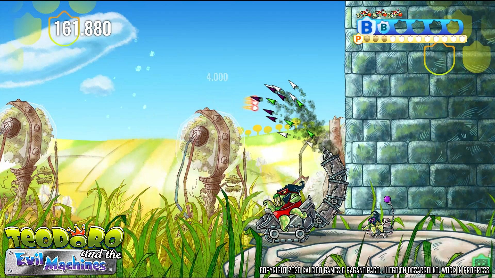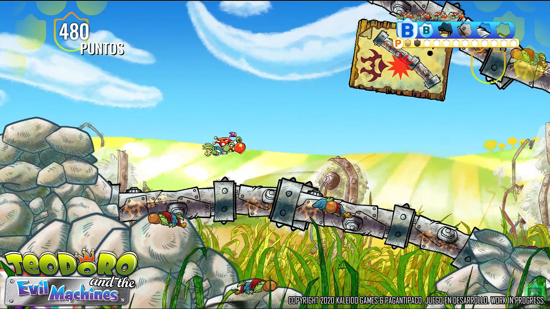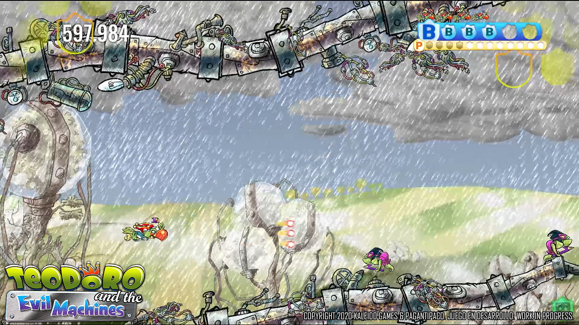 TEODORO AND THE EVIL MACHINES allows you to play in simultaneous multiplayer cooperative mode with another friendly character: GOMINOLO.