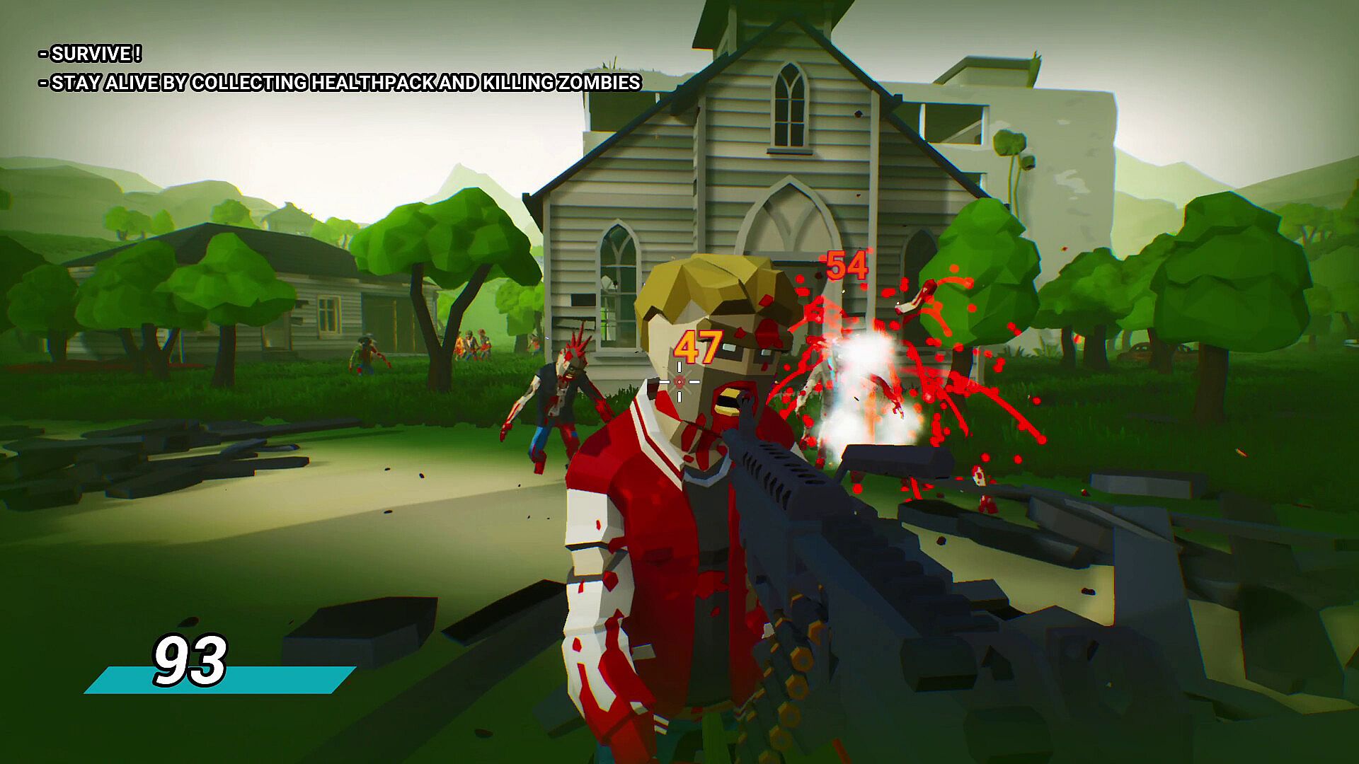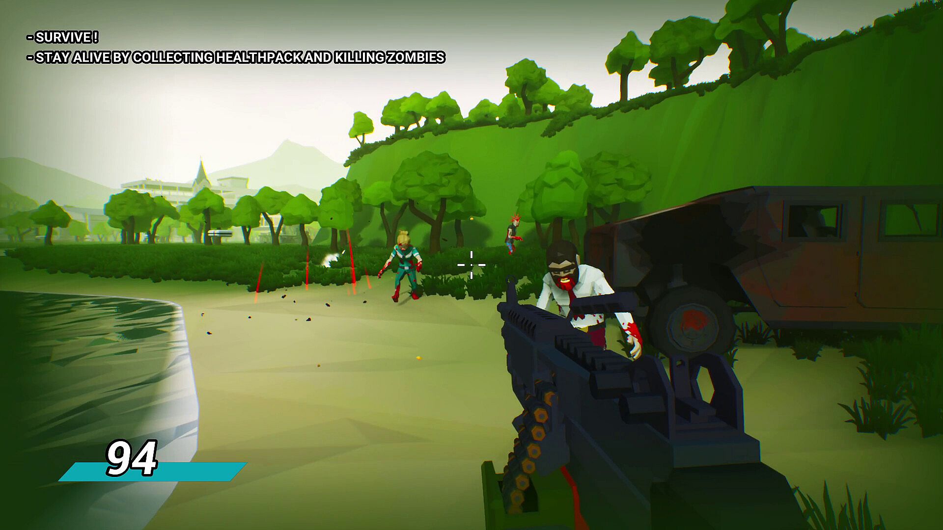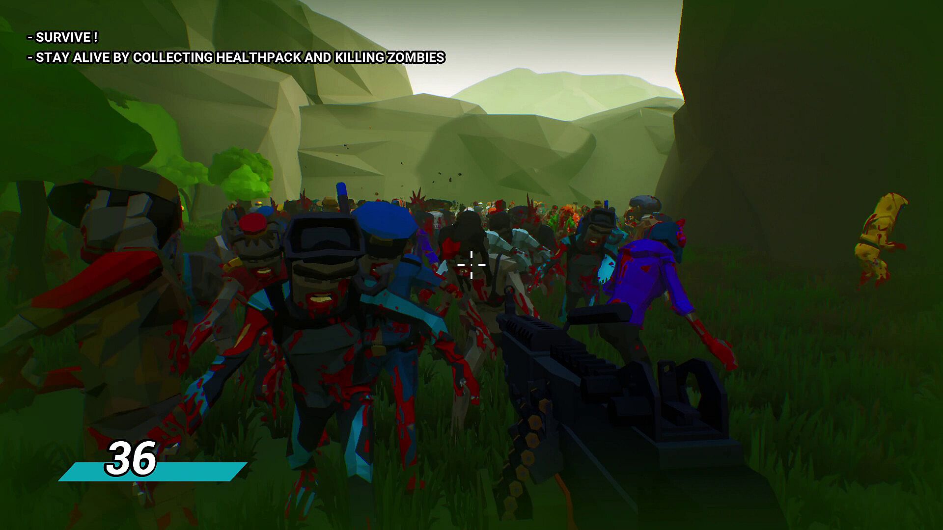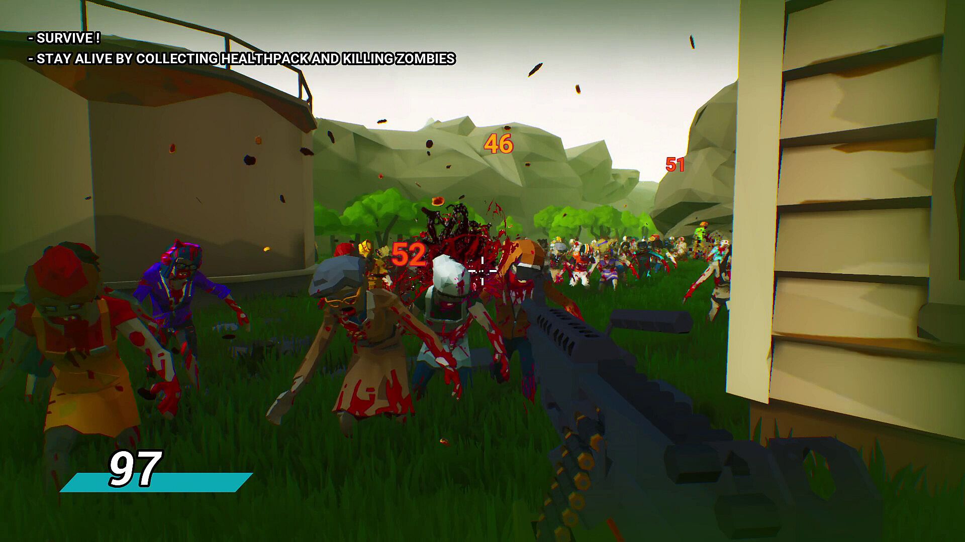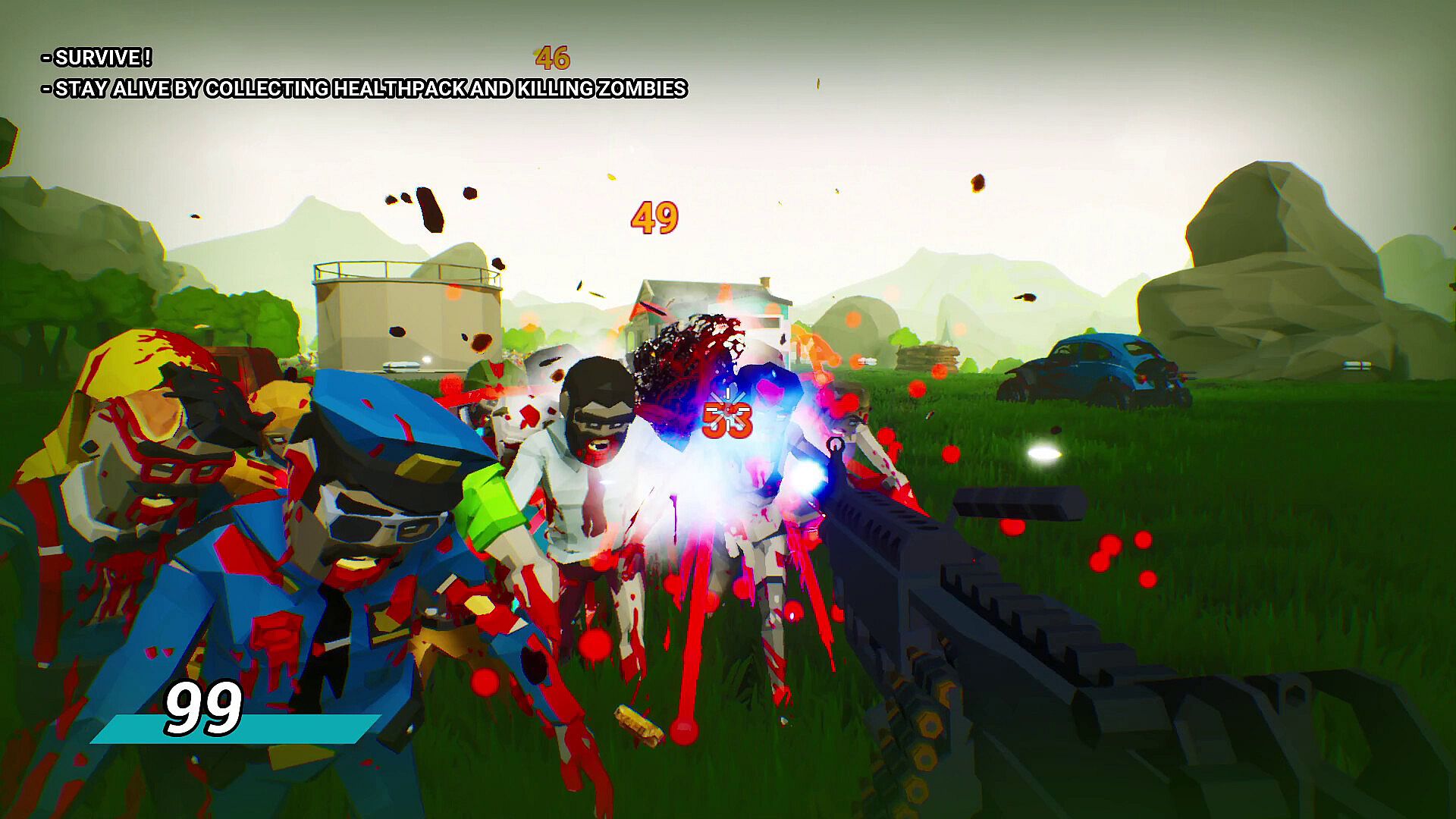 In this first person shooter game you have to survive endless hordes of zombies, for as long as possible. Shoot them before they snack on you. Collect the health packs to keep your health up during the fights, as your health constantly drained by the virus.
