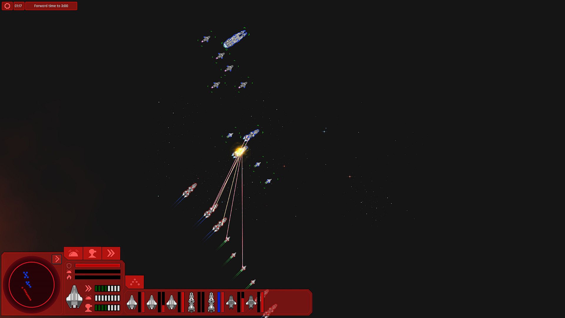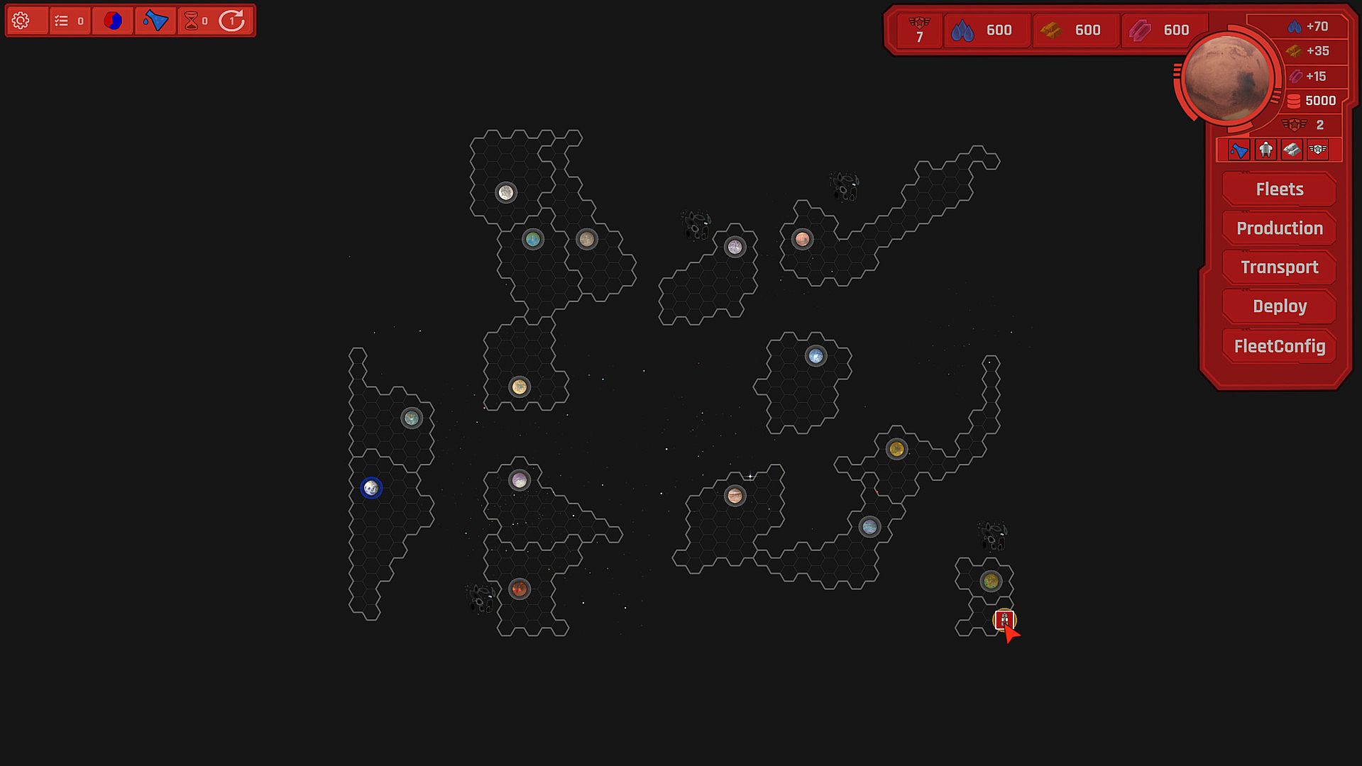 TerraMartis4x is divided into two layers. On the galaxy map you make strategic turned based decisions about which planets to colonize, which fleets to build, where to attack, what to defend and which planet to conquer. When two fleets meet you can dive into the battlefield the second part of the game where you make tactical decisions for each unit in your fleet in real time.