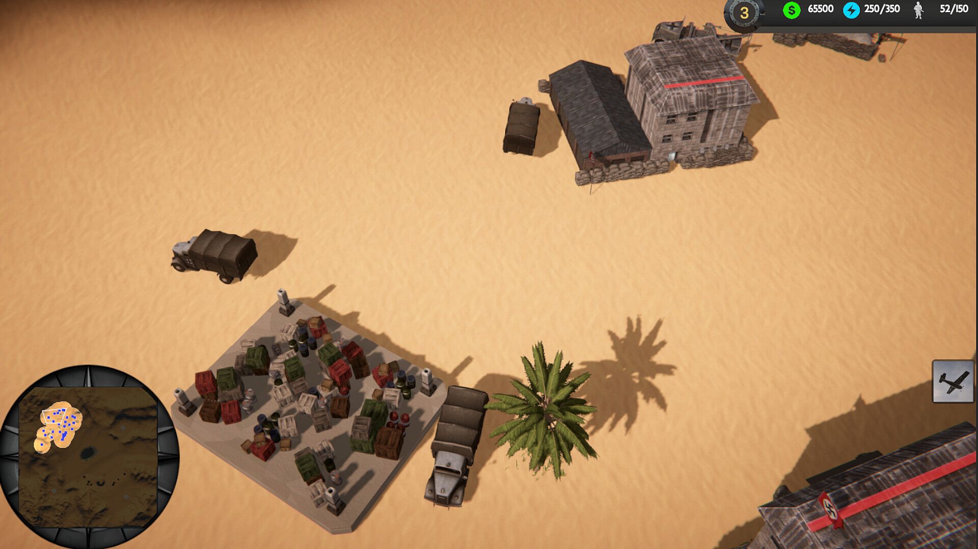 • Run vulnerable supply vehicles between fields, caches and depots. If your convoys die, your war machine stalls.