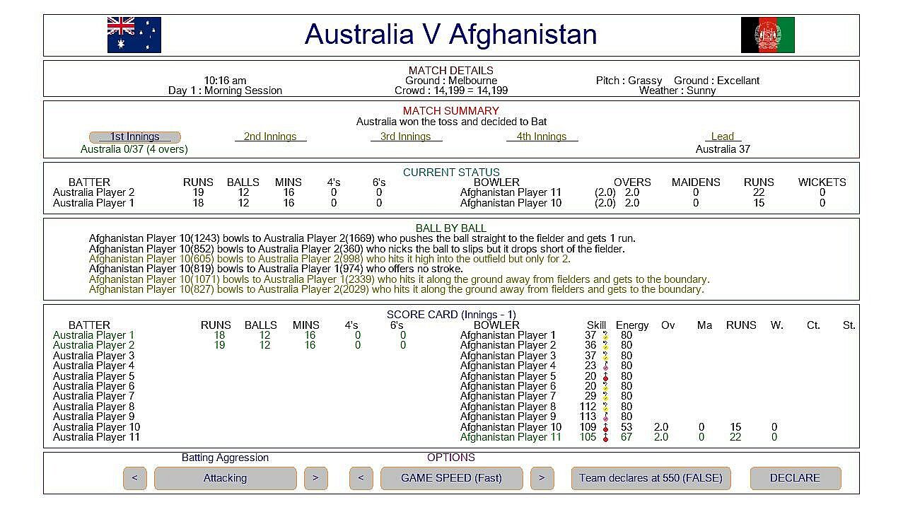 - Set the batting line up; change your batters aggression at any time. Declare at any time.