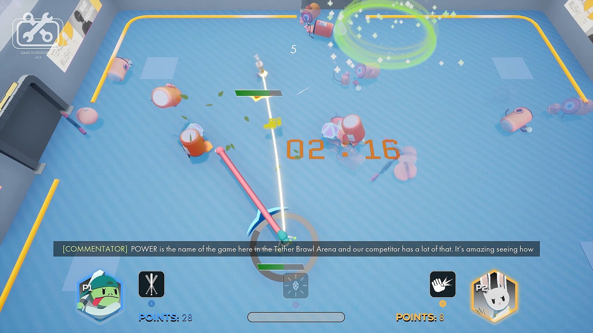 TETHER BRAWL is an action-packed, top-down, 2-player game where co-operation is optional.