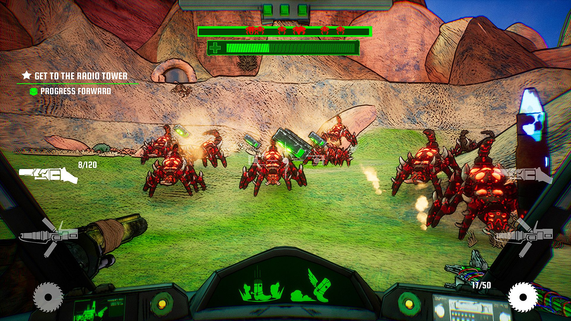 • Bash, stomp, ignite, and squish hoards of massive bugs with your mech using 3 distinct weapons: repeater pistols, flame throwers, and combine launchers