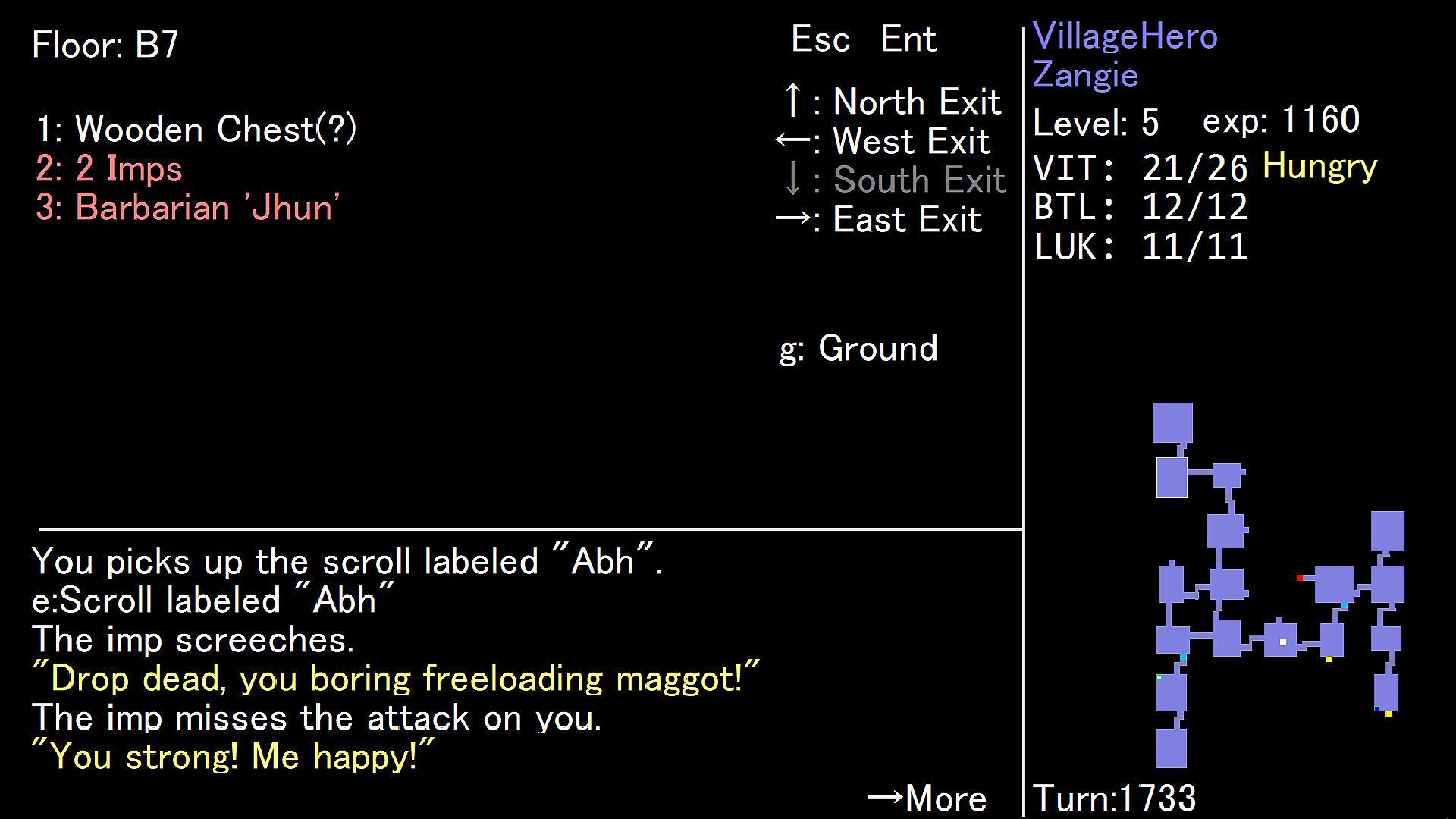 • Hundreds of items: weapons, armor, scrolls, potions, wands, food, keys, artifacts