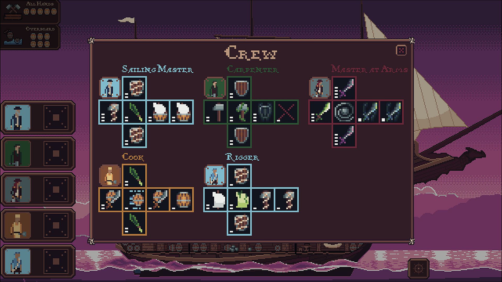Whether you succeed or fail, every voyage is a chance to gain experience and resources. Return to port to upgrade your ship, unlock new crew, improve existing crewmates or invest in the port's infrastructure.