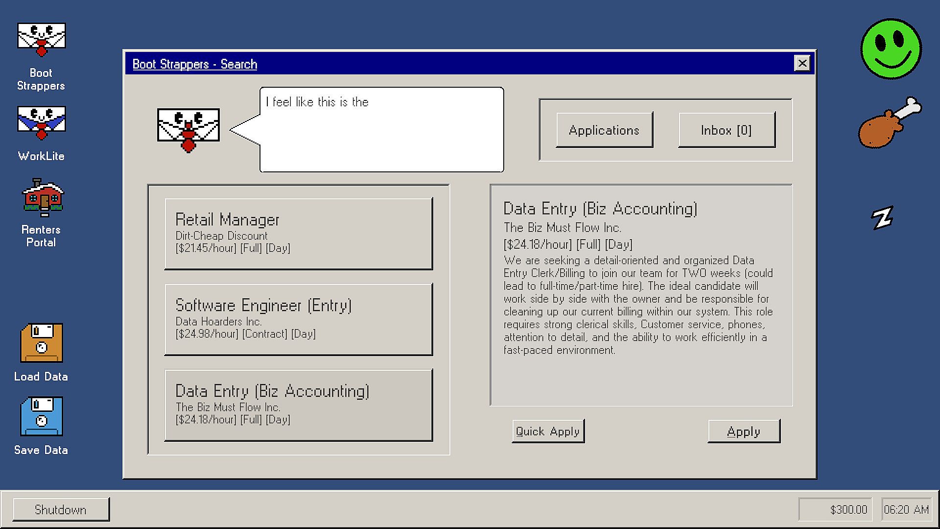 -Balance your search for gainful employment and working odd jobs to keep the groceries coming in and your bills paid!